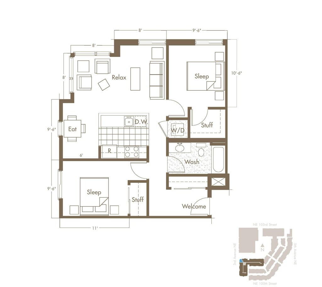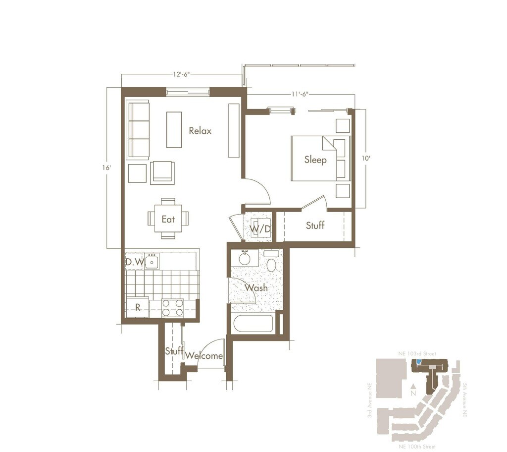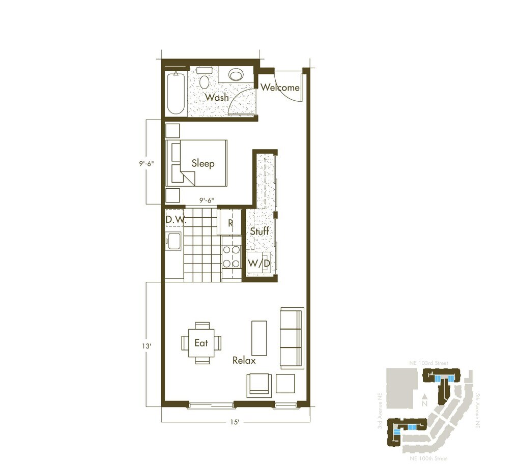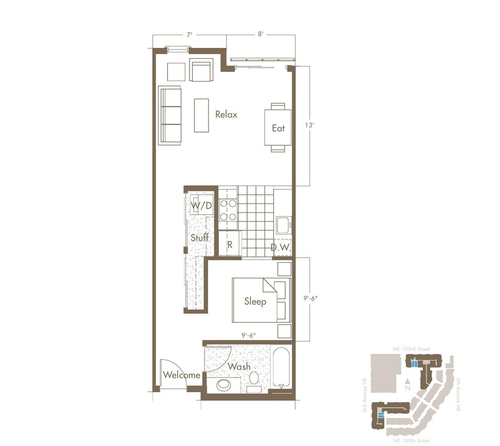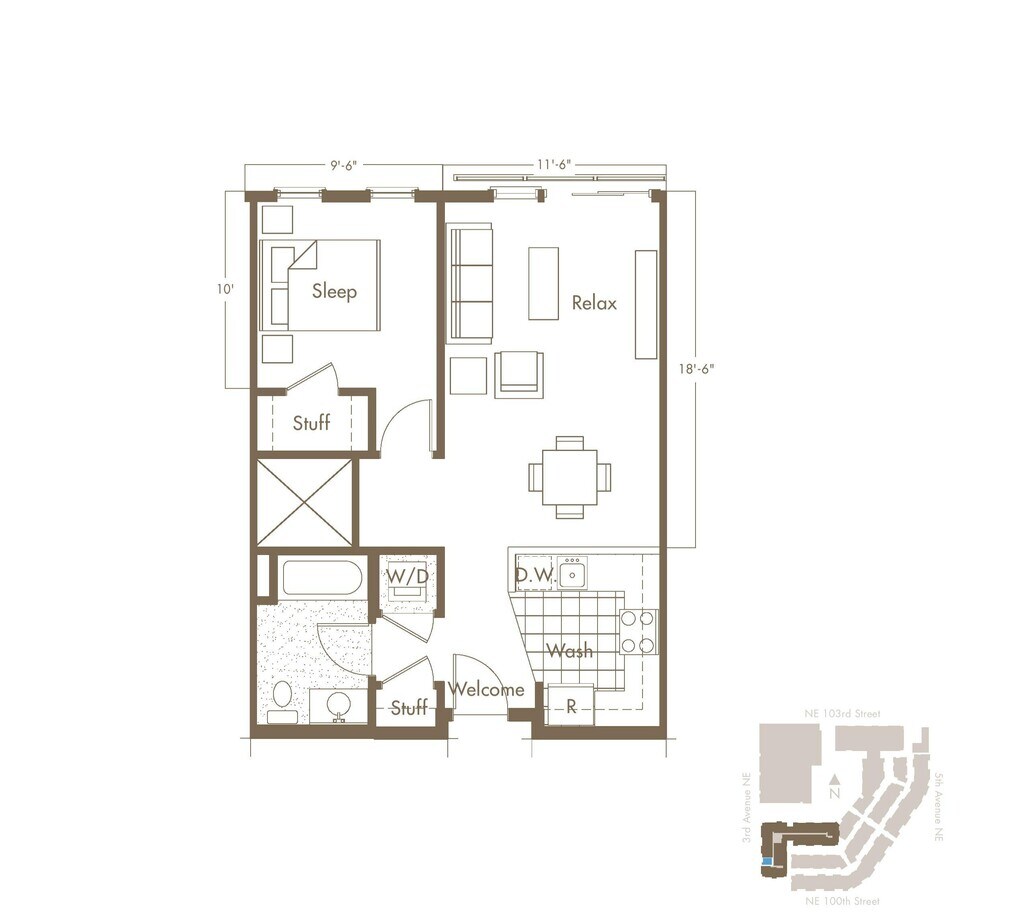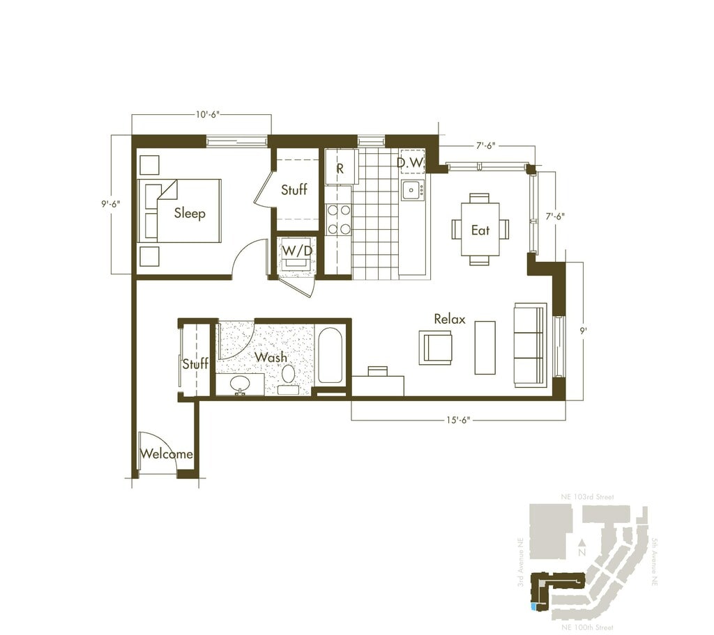 U4 - Floorplan 1 Apartment Unit: 2-308Apartment Model: U4$2,2341 Bedroom, 1 Bath, 605 sq ftAvailable NowFloorplan A8