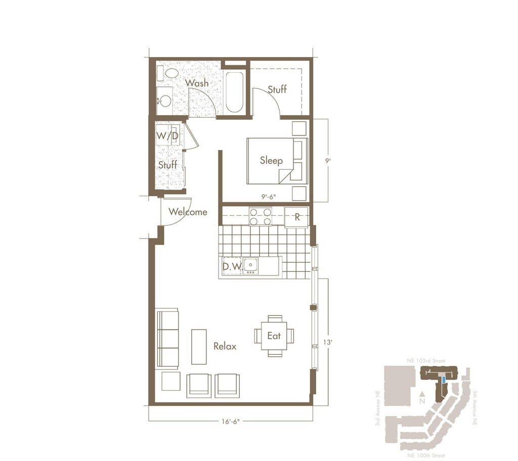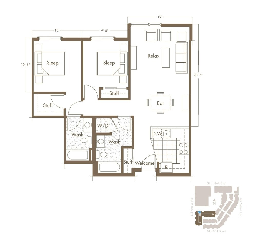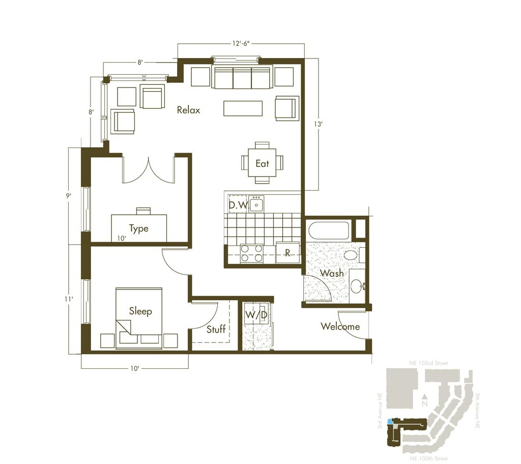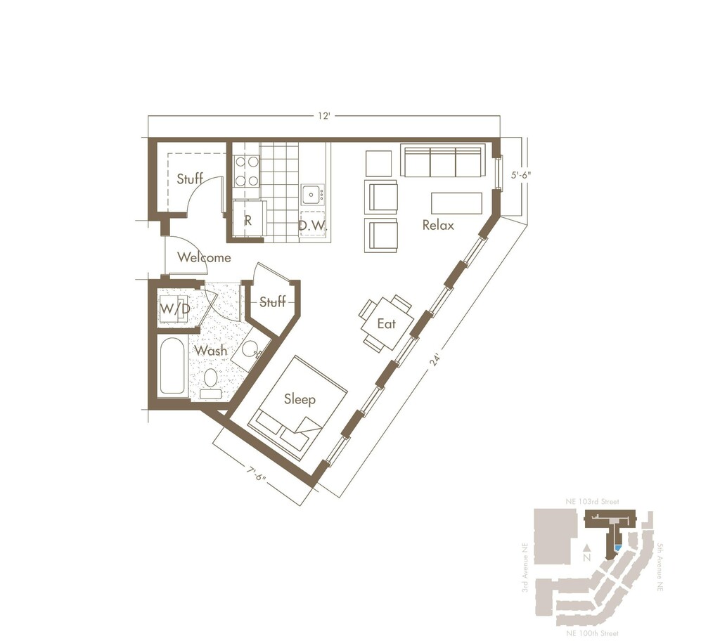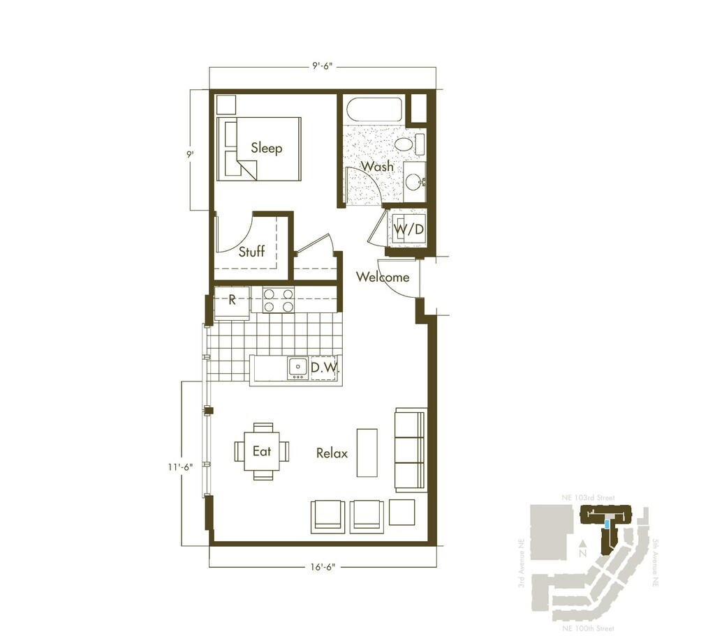 U4 - Floorplan 1 Apartment Unit: 2-308Apartment Model: U4$2,2341 Bedroom, 1 Bath, 605 sq ftAvailable NowFloorplan A8