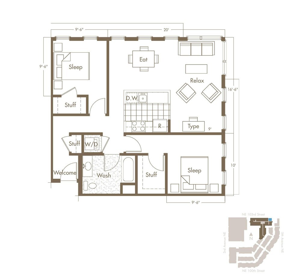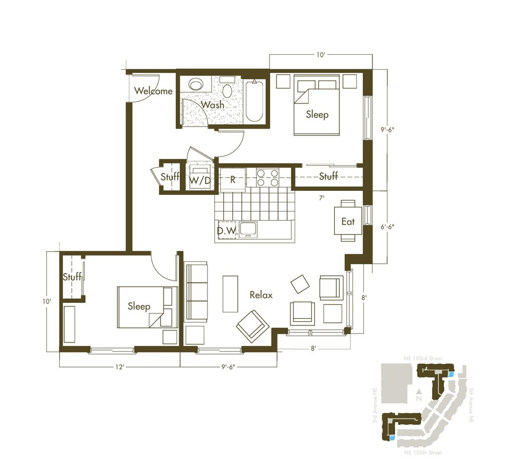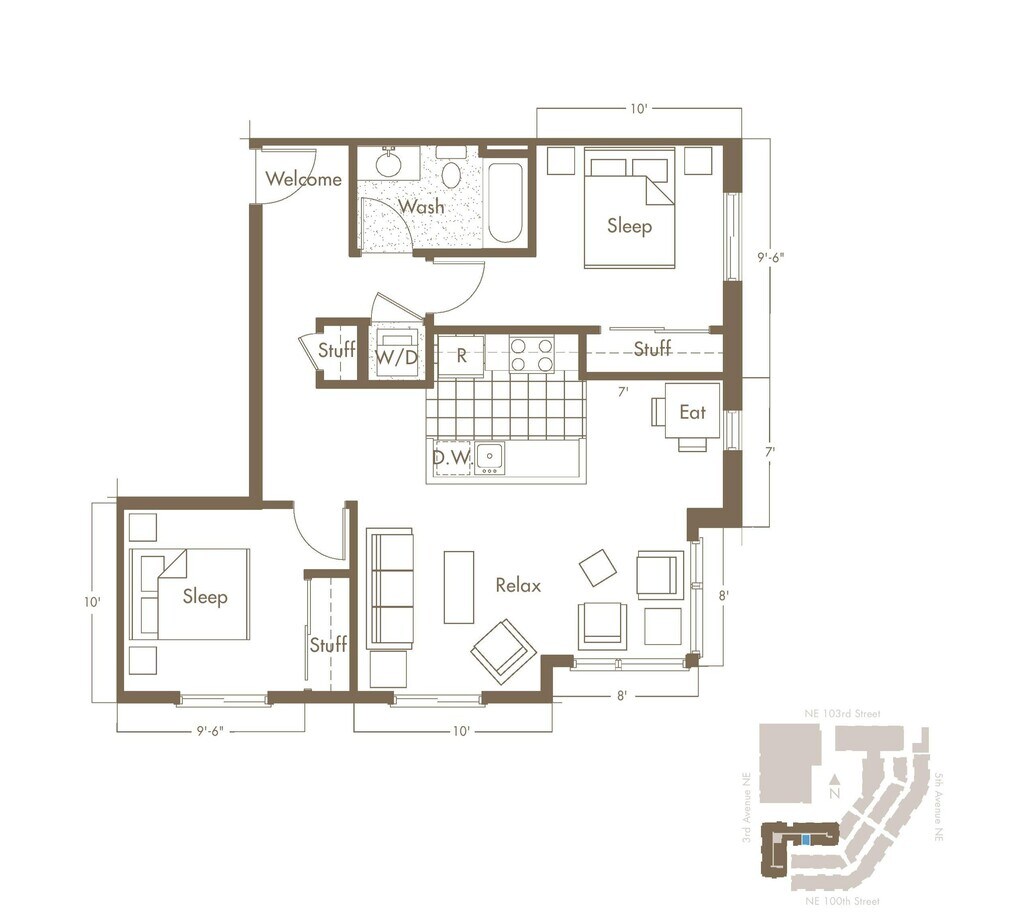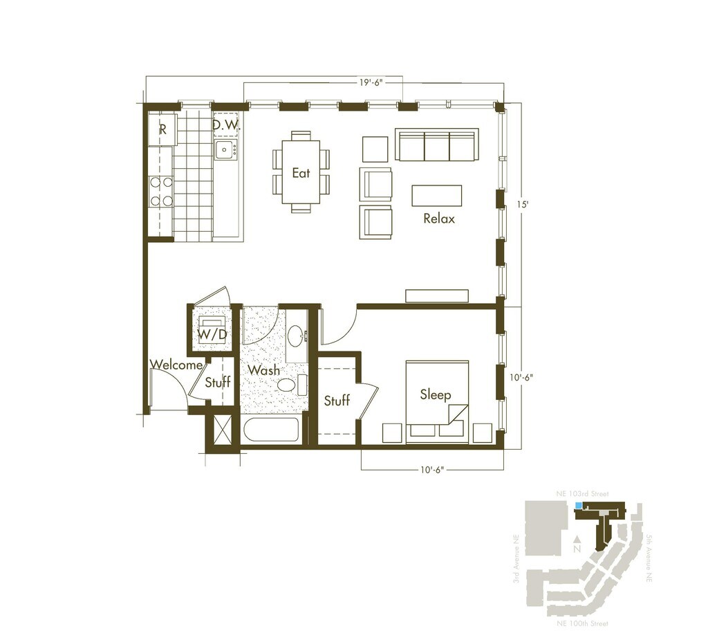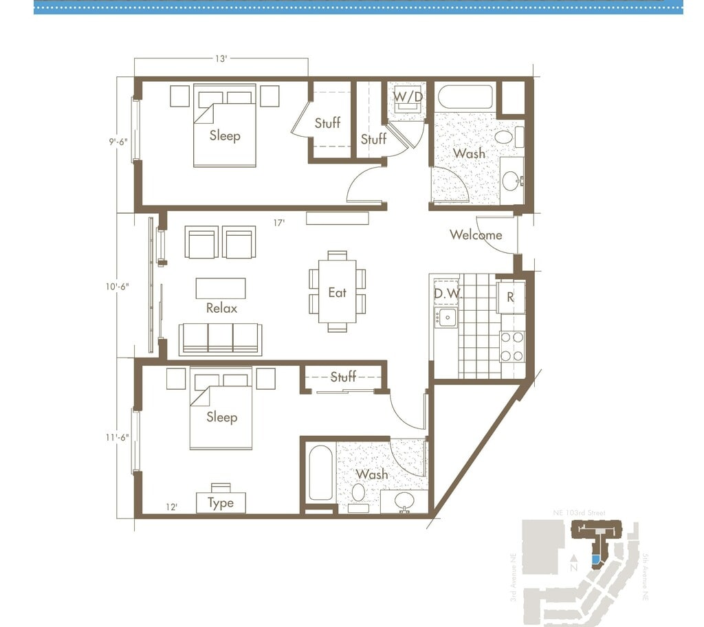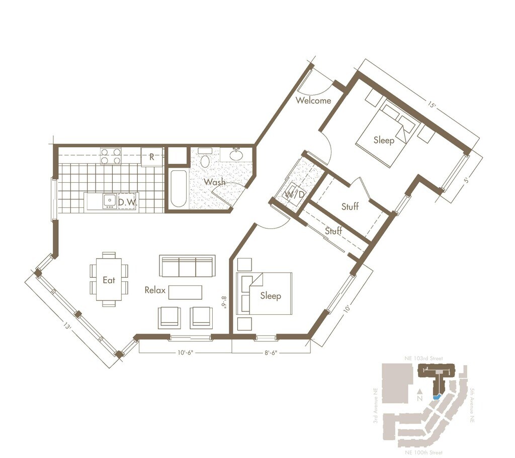 U4 - Floorplan 1 Apartment Unit: 2-308Apartment Model: U4$2,2341 Bedroom, 1 Bath, 605 sq ftAvailable NowFloorplan A8