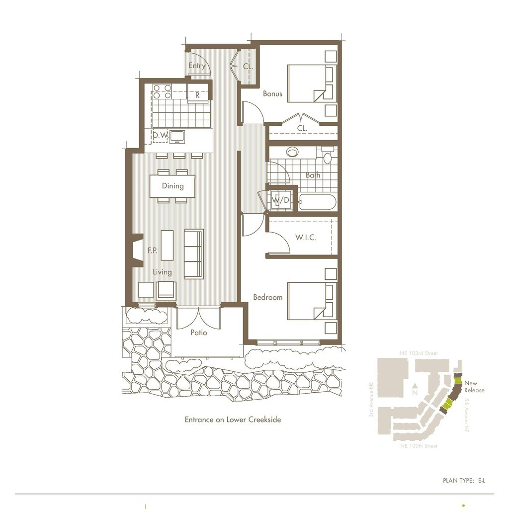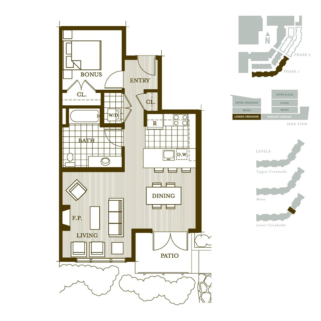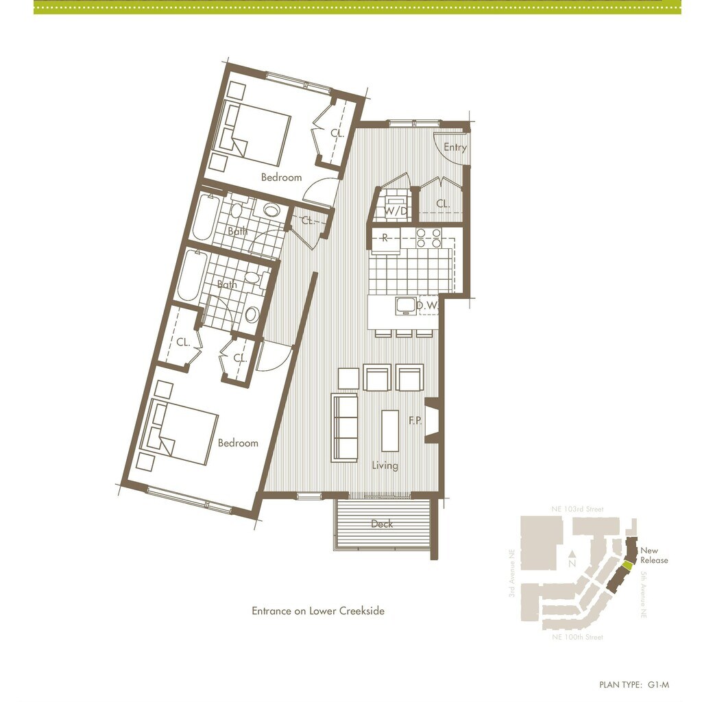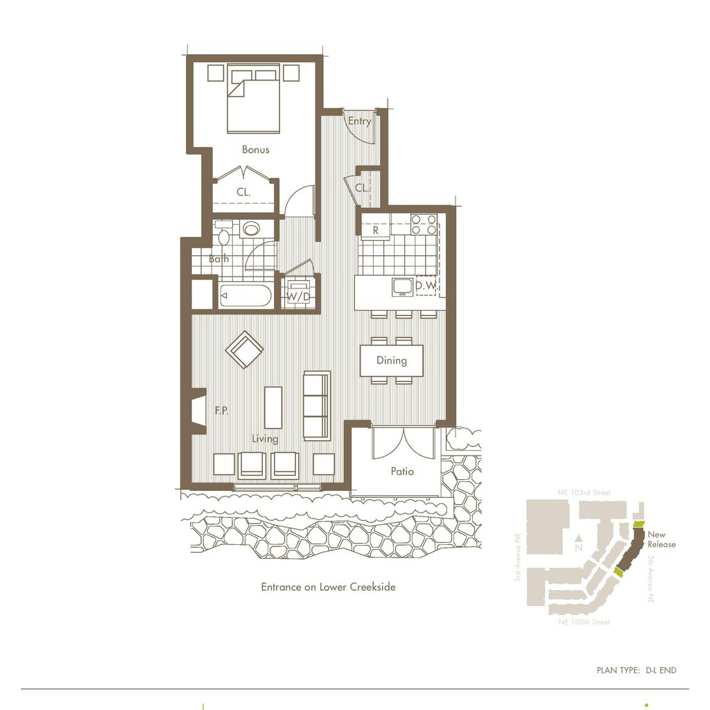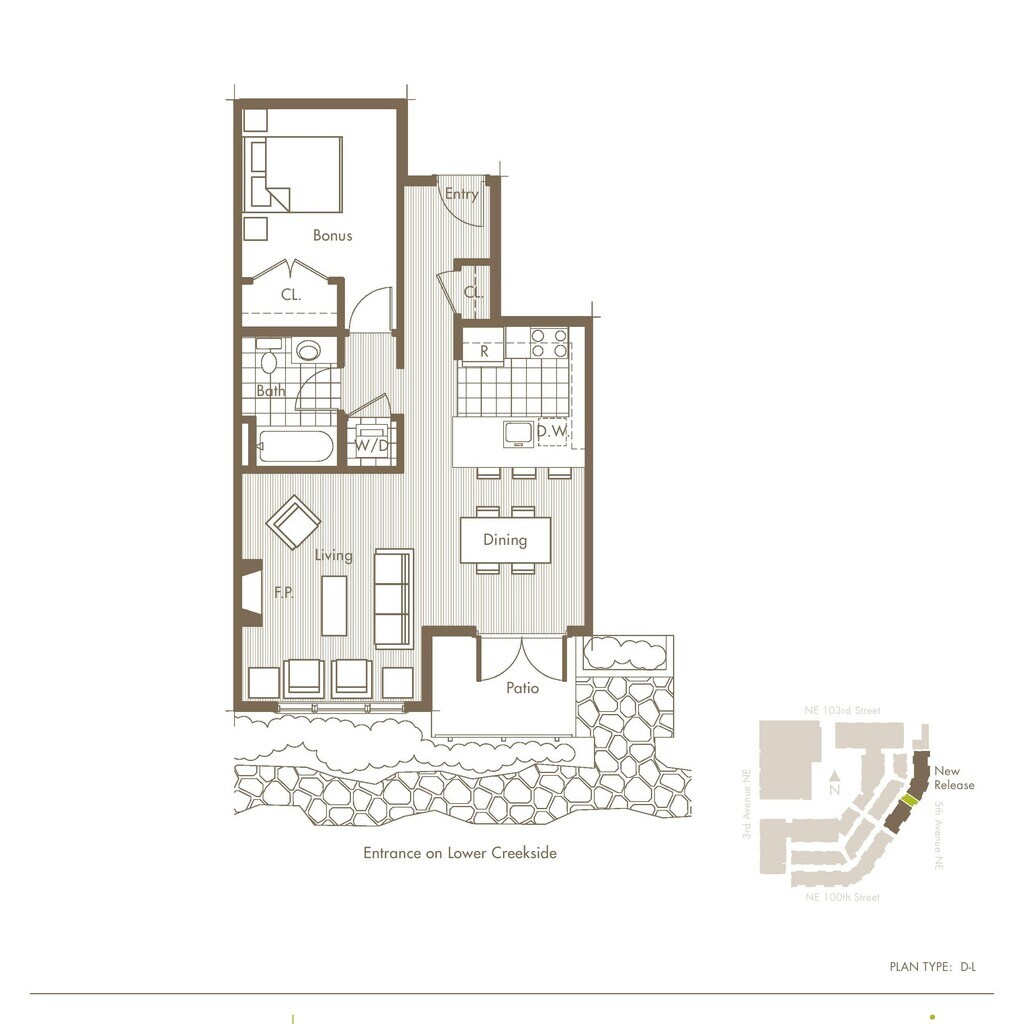 Thornton Place offers two styles of apartments: Creekside and Plaza. Creekside features refined interiors including natural gas fireplaces and ranges, private patio or balcony spaces, a stainless-steel kitchen package, and granite countertops. Our Plaza apartments features blonde wood cabinetry, trash chutes on every floor, and energy-efficient appliances. Each apartment has abundant natural light, open floor plans, and unique views of our community. Thornton Place is also home to a 14-screen Regal Cinemas theater, seven restaurants, and is only a quick 5-minute walk to the Northgate Light Rail station.
