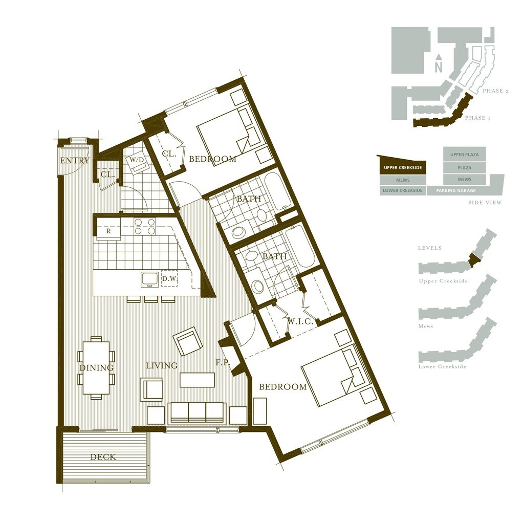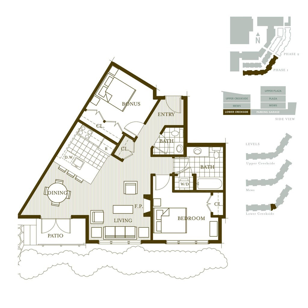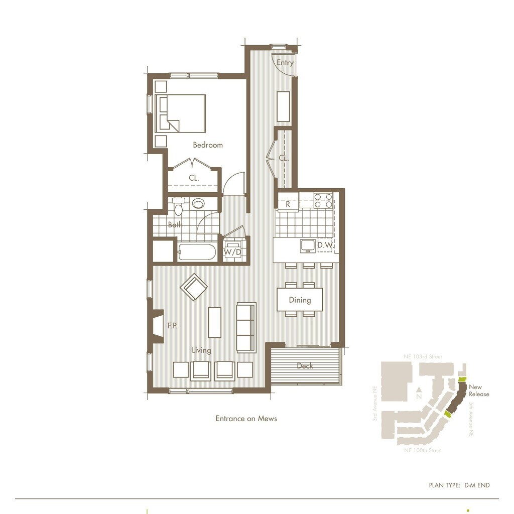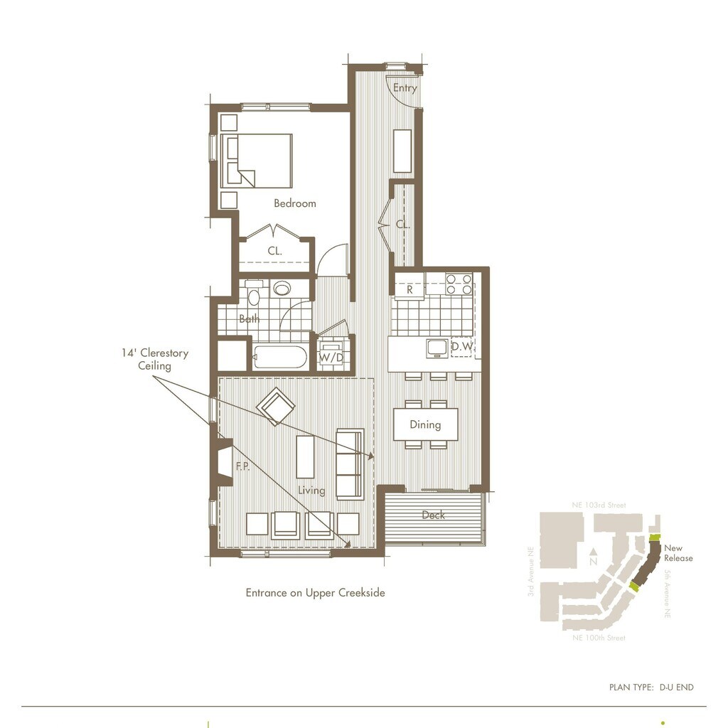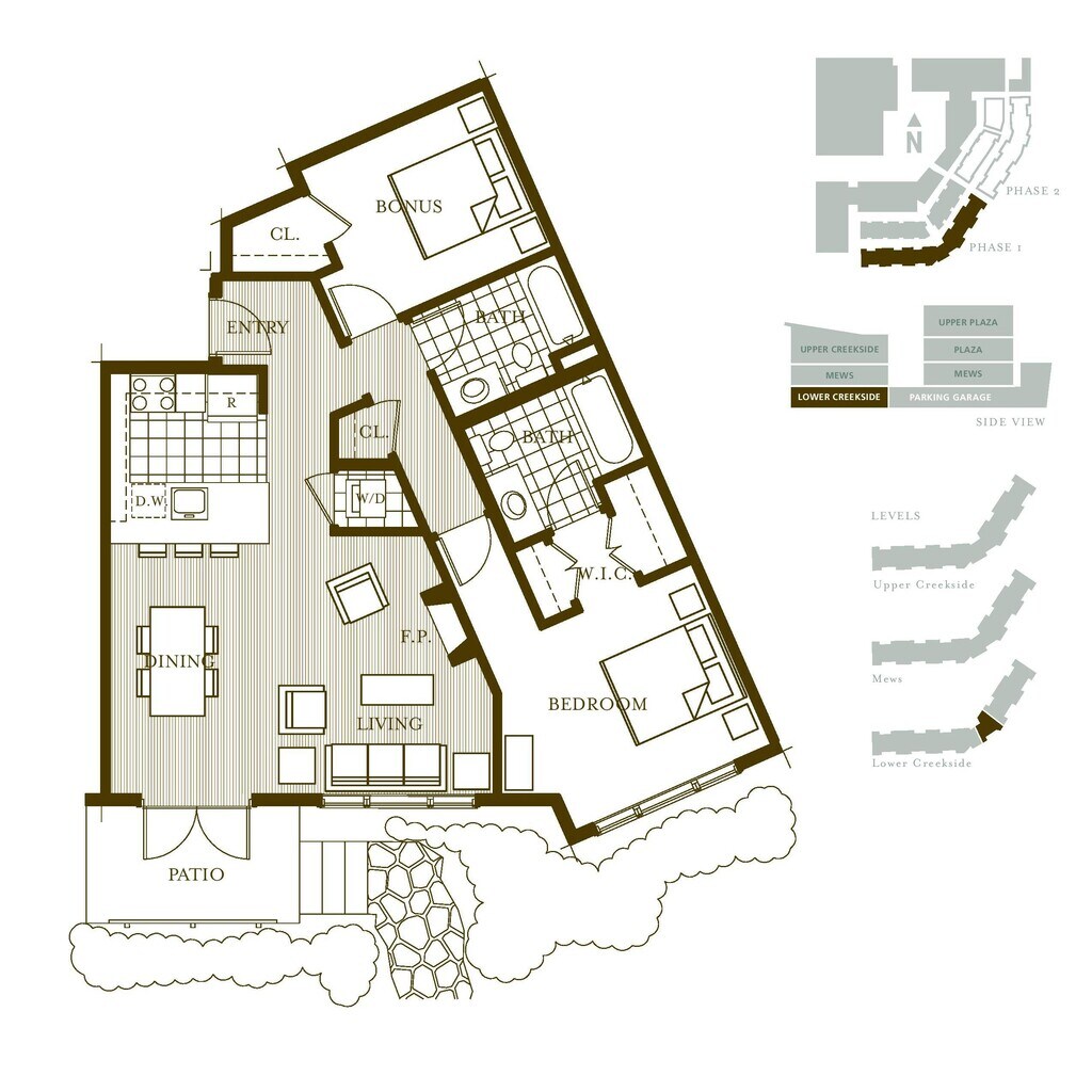 Thornton Place offers two styles of apartments: Creekside and Plaza. Creekside features refined interiors including natural gas fireplaces and ranges, private patio or balcony spaces, a stainless-steel kitchen package, and granite countertops. Our Plaza apartments features blonde wood cabinetry, trash chutes on every floor, and energy-efficient appliances. Each apartment has abundant natural light, open floor plans, and unique views of our community. Thornton Place is also home to a 14-screen Regal Cinemas theater, seven restaurants, and is only a quick 5-minute walk to the Northgate Light Rail station.