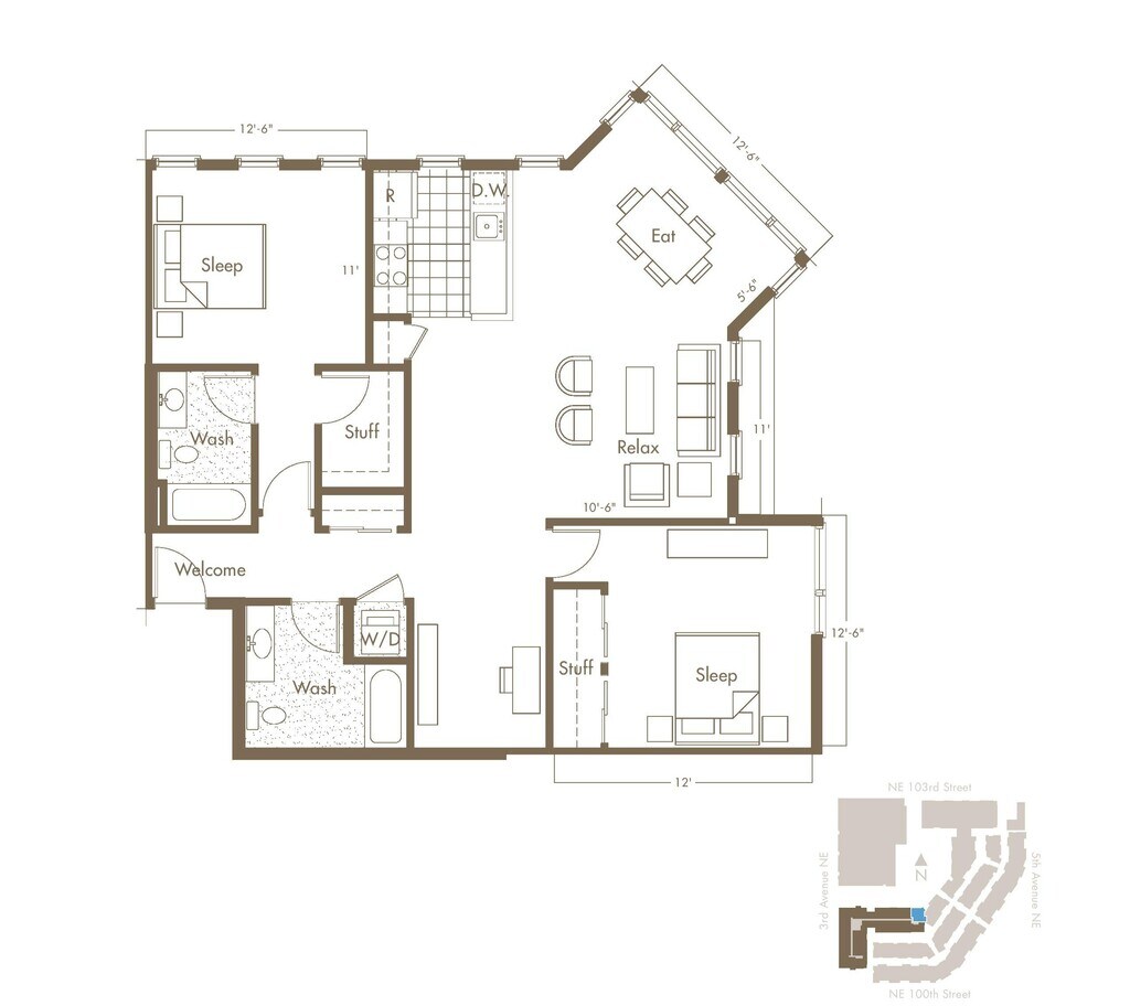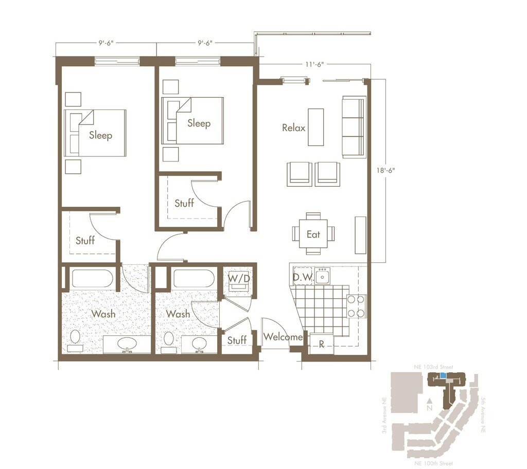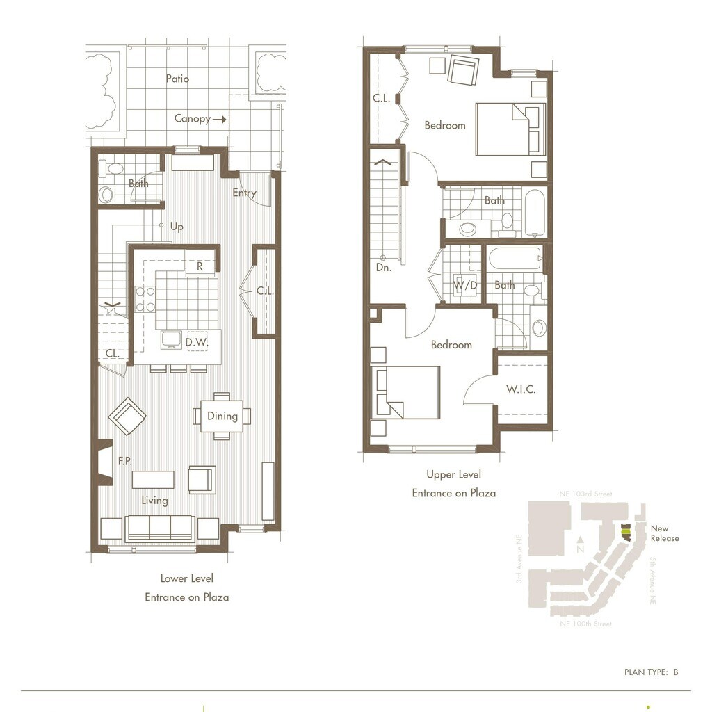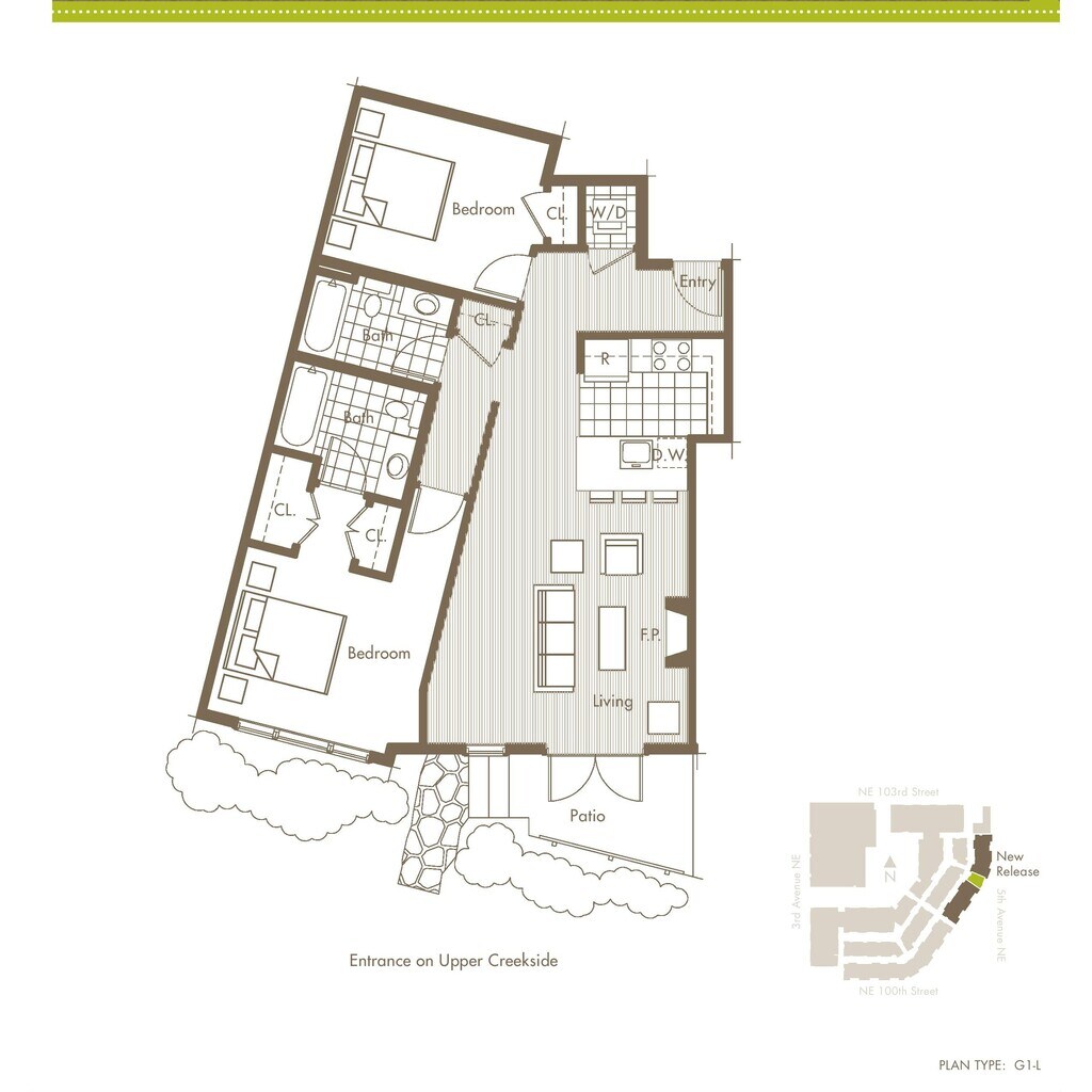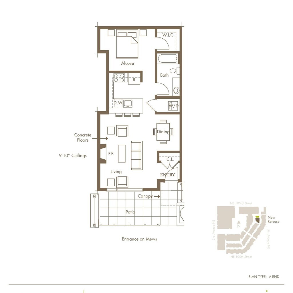 Thornton Place offers two styles of apartments: Creekside and Plaza. Creekside features refined interiors including natural gas fireplaces and ranges, private patio or balcony spaces, a stainless-steel kitchen package, and granite countertops. Our Plaza apartments features blonde wood cabinetry, trash chutes on every floor, and energy-efficient appliances. Each apartment has abundant natural light, open floor plans, and unique views of our community. Thornton Place is also home to a 14-screen Regal Cinemas theater, seven restaurants, and is only a quick 5-minute walk to the Northgate Light Rail station.