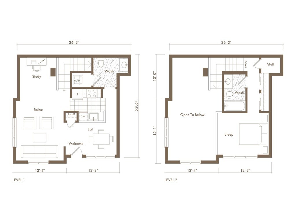 Studio, 1 Bath, 605 sq ftAvailable NowModel Gallery