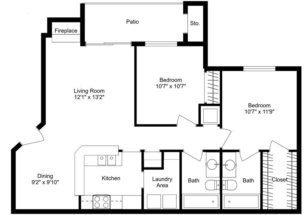 B2 - 2 Bed | 2 Bath | 1048 sq ft