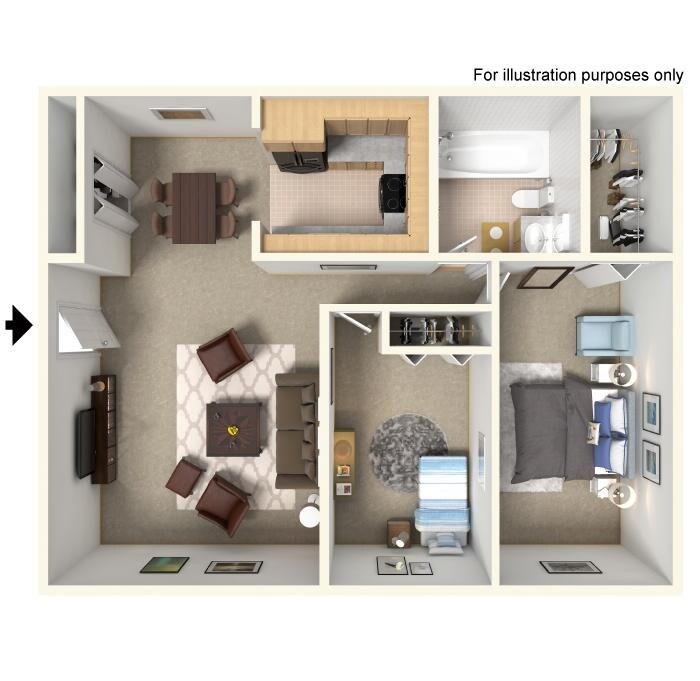 - 1 Bedroom- One Bedroom- $7651 Bed, 1 Bath, 686 sq ftAvailable Now- Availability Details- Price - Availability Date - Unit - Sq Ft - $765 - Available Now - One Bedroom - 686 sq ft - Model Amenities and Features- Features- Air Conditioning