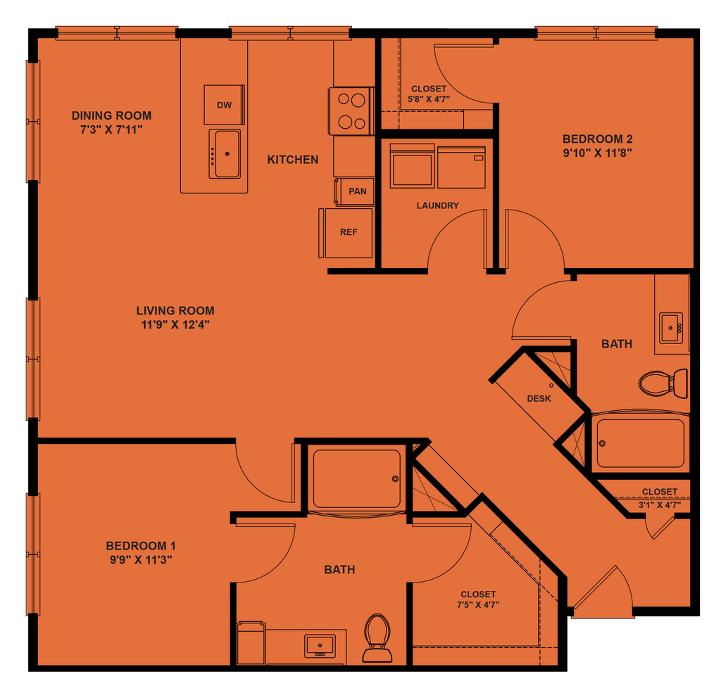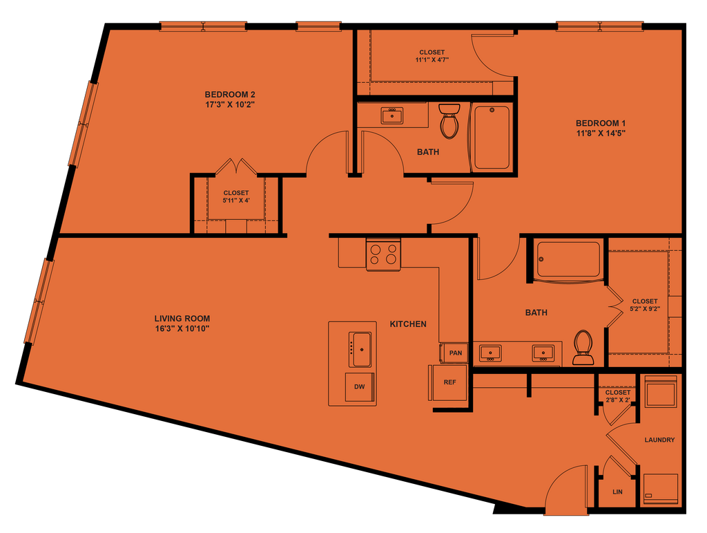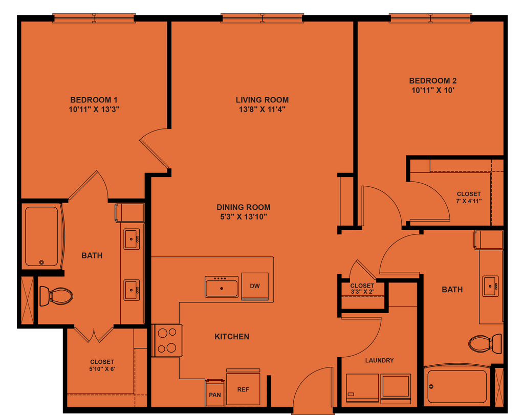 - Walk-in closets*