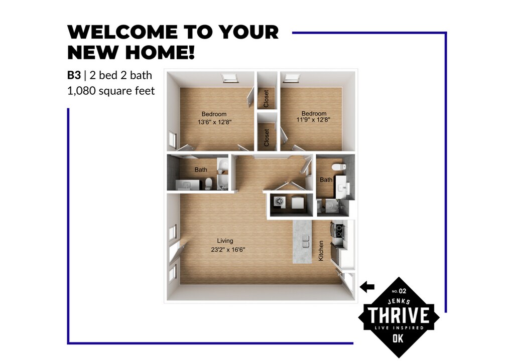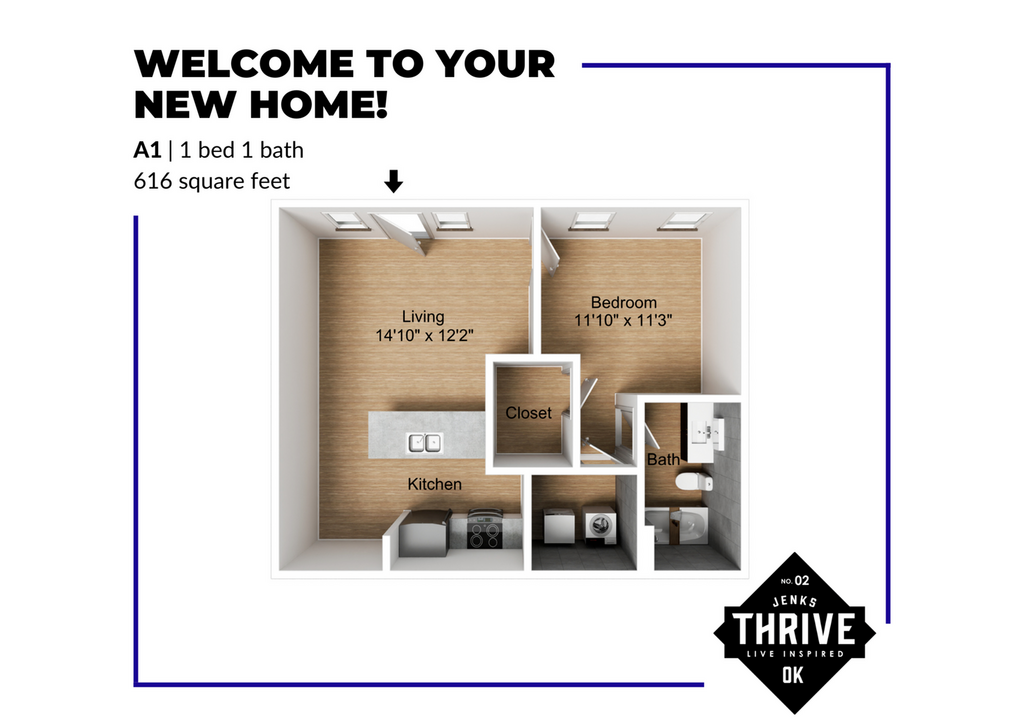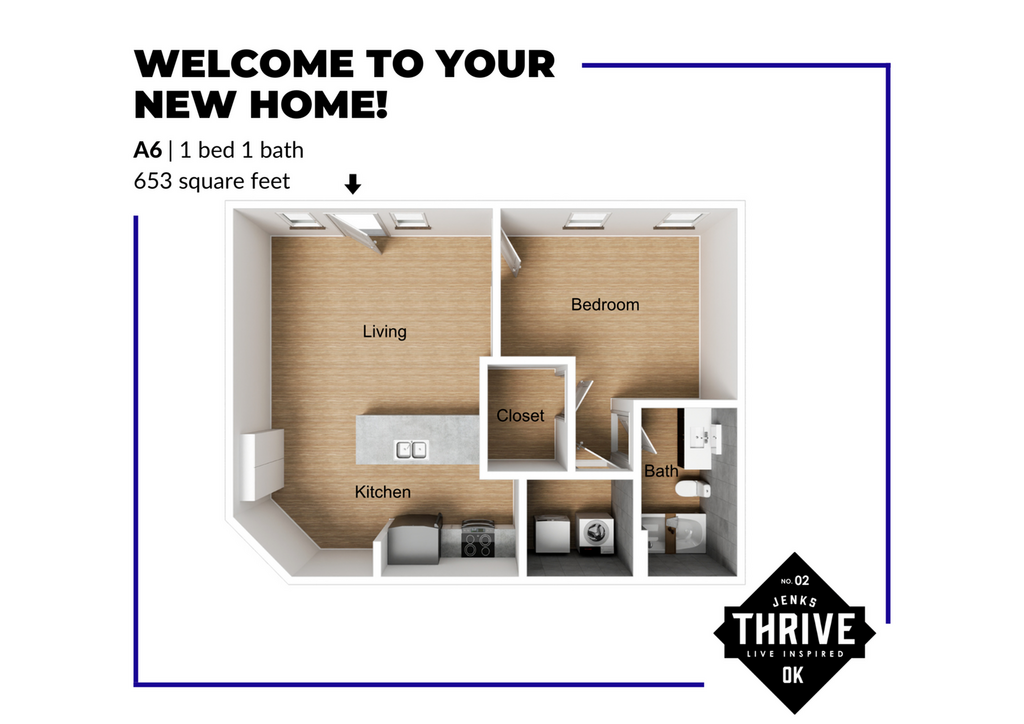 Discover exceptional living at Thrive Jenks, the premier apartments in Tulsa, Oklahoma. Come home to ultimate convenience when you reside at our calming, maintenance-free community. Thrive Jenks boasts spacious one and two-bedroom apartments that were designed with you in mind and feature a fully-equipped kitchen, electronic thermostat, ceiling fans, and hardwood flooring. You can also enjoy endless options for entertainment, shopping, and dining located just minutes from our community. Are you ready to take the next step in apartment living? Uncover all of the great things that Thrive Jenks offers when you schedule a personalized tour!