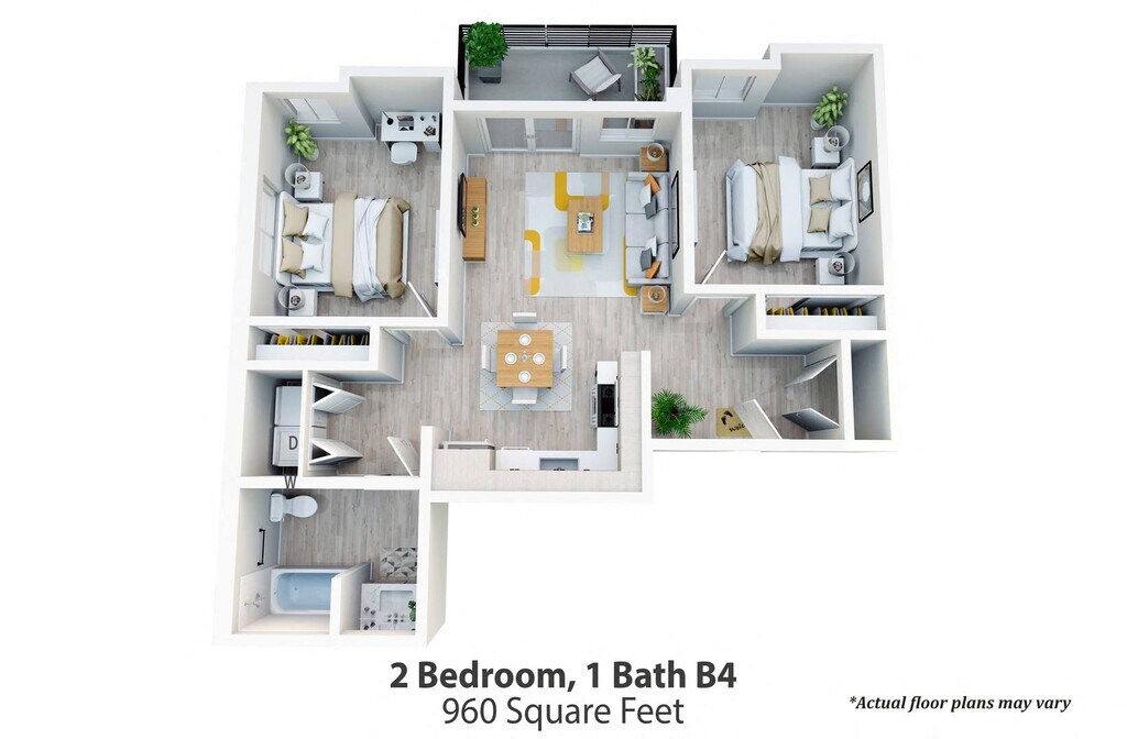 2 Bed, 1 Bath B4 - Floorplan 1 2 Bedroom, 2 Bath B2