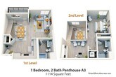 1 Bed, 2 Bath Penthouse A3 - Floorplan 1 Apartment Unit: 407Apartment Model: 1 Bed, 2 Bath Penthouse A3$3,5951 Bedroom, 2 Bath, 1114 sq ftAvailable January 17, 2026![]()
