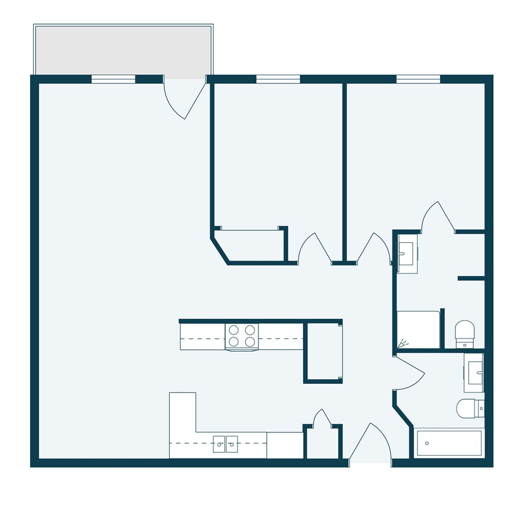 Apartment Model: Two Bedroom 21BFrom $7752 Bedroom, 1 Bath, 884 sq ftUnavailable![]()