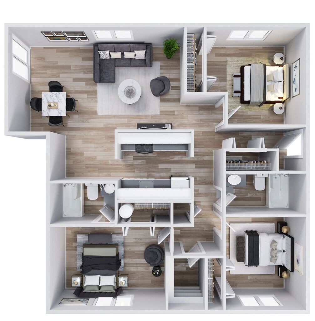 3 Beds, 2 Baths, 1260 sq ftModel Gallery