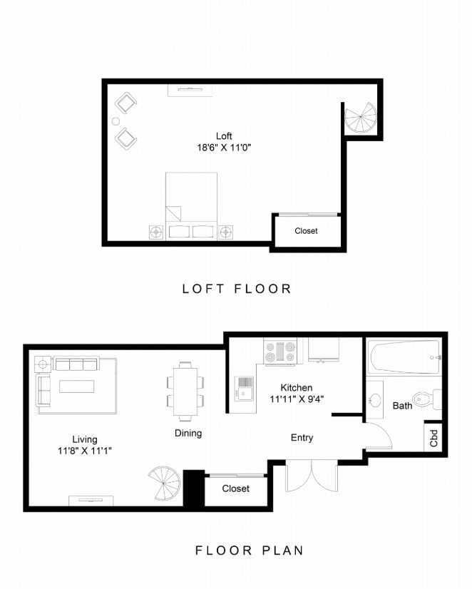 Apartment Model: Loft$1,0951 Bedroom, 1 Bath, up to 700 sq ftAvailable NowLoft - Floorplan 1 2 Bedrooms