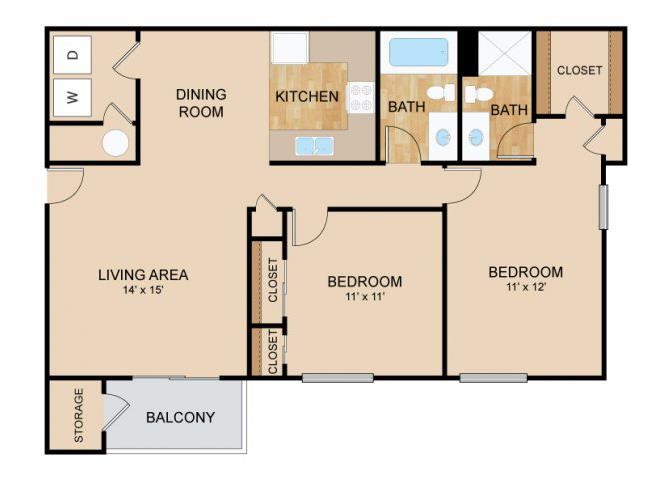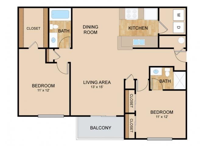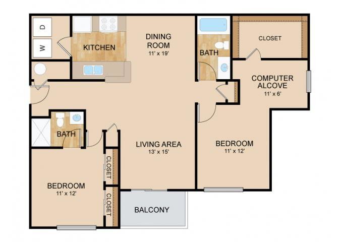 2 Beds, 2 Baths, 1211 sq ftAvailable January 31, 2026Largest 2 BedroomThis is the largest 2 Bedroom at this PropertyModel Gallery