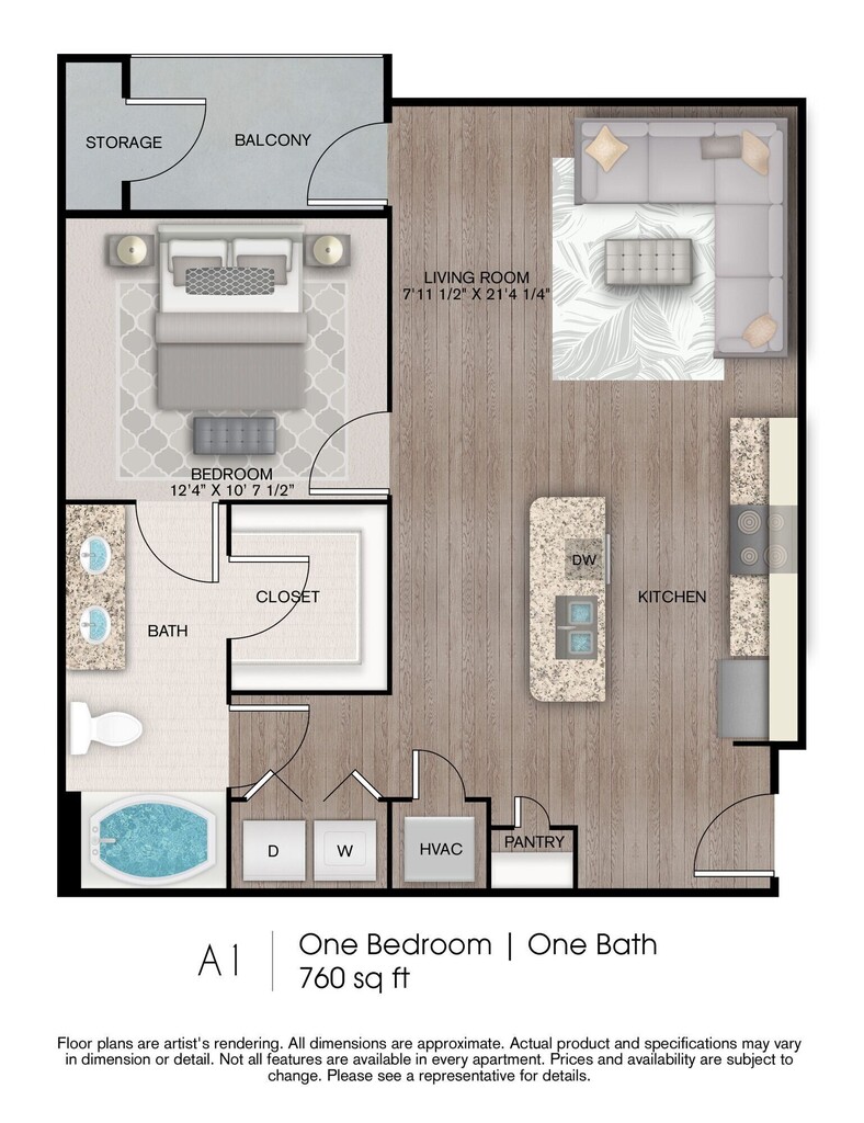 Apartment Model: A1 - ADA$1,1241 Bedroom, 1 Bath, 760 sq ftUnavailableFloor plans are artist's rendering. All dimensions are approximate. Actual product and specifications may vary in dimension or detail. Not all features are available in every rental home. Prices and availability are subject to change. Base rent is based on monthly frequency. Additional fees may apply, such as but not limited to package delivery, trash, water, amenities, etc. Deposits vary. Please see a representative for details.