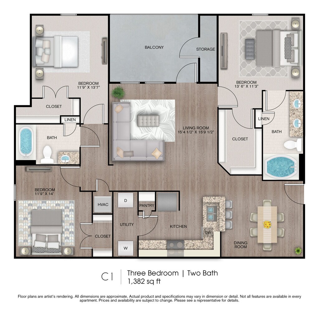Apartment Model: C1$1,9253 Bedroom, 2 Bath, 1382 sq ftUnavailableFloorplansPhotos![]()