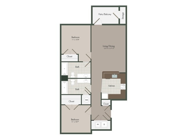 2 Beds, 2 Baths, 1001 sq ftAvailable NowModel Gallery
