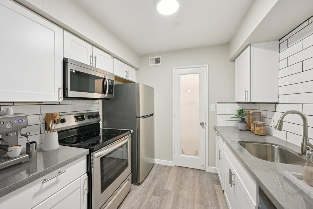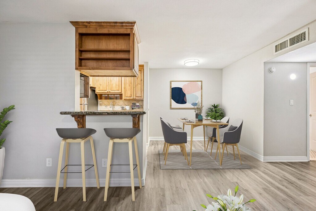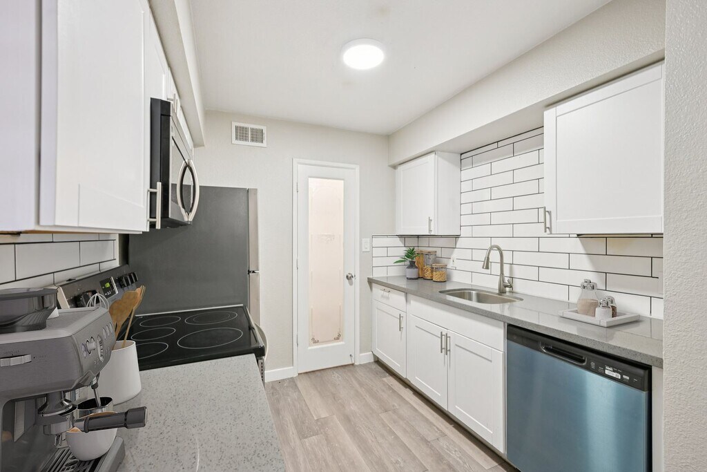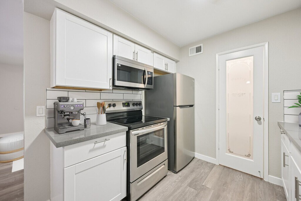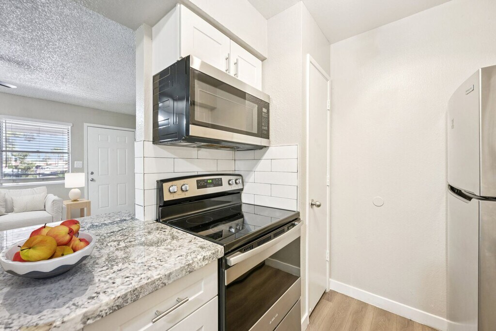Enjoy stylish upgrades including wood-style flooring, stainless steel appliances, quartz countertops, and an in-home washer and dryer. Modern finishes add polish and ease to this well-designed layout.
