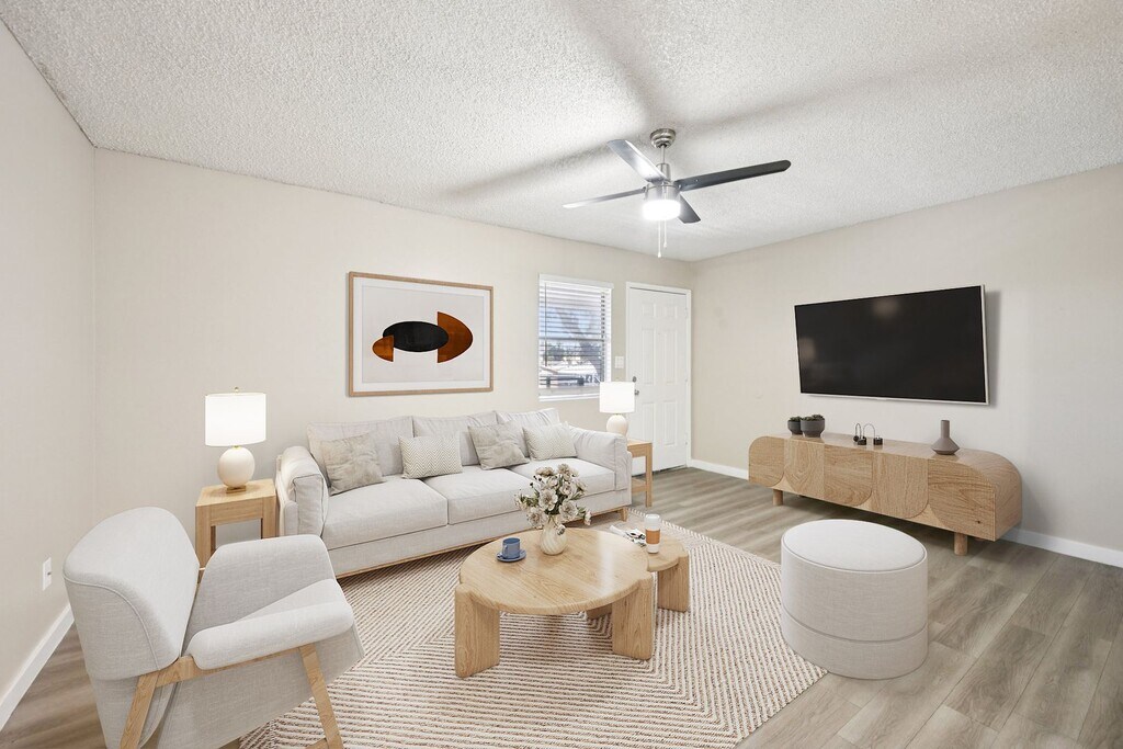 This refreshed layout offers wood-style flooring, stainless steel appliances, quartz countertops, and updated interior accents, bringing modern convenience and added comfort to your home.