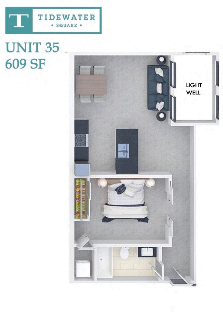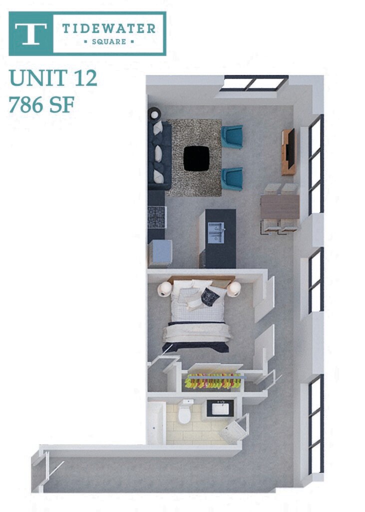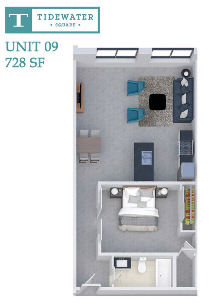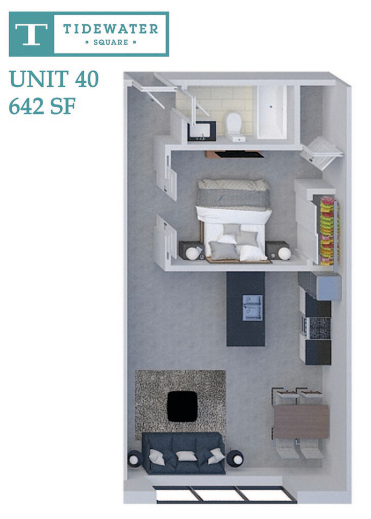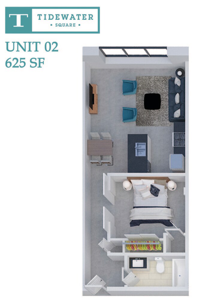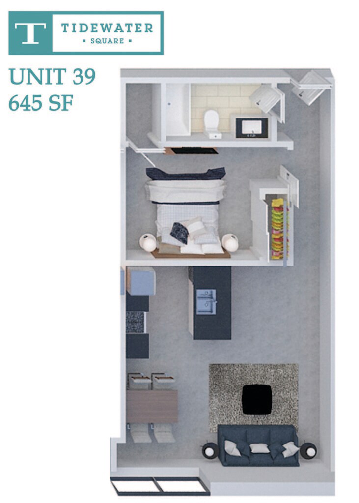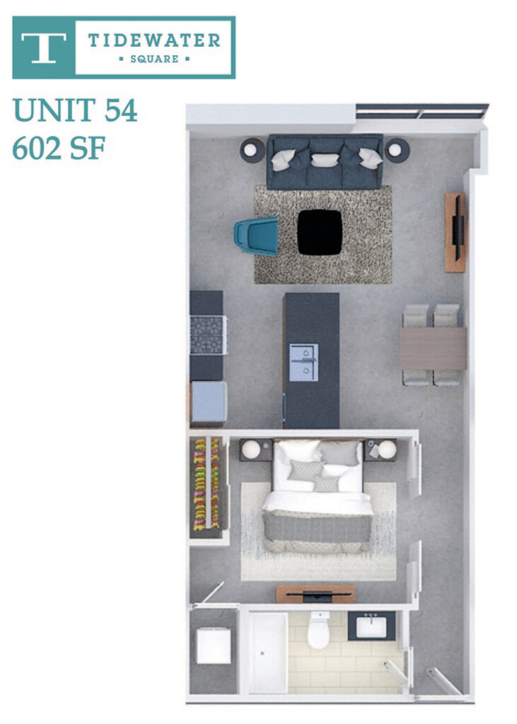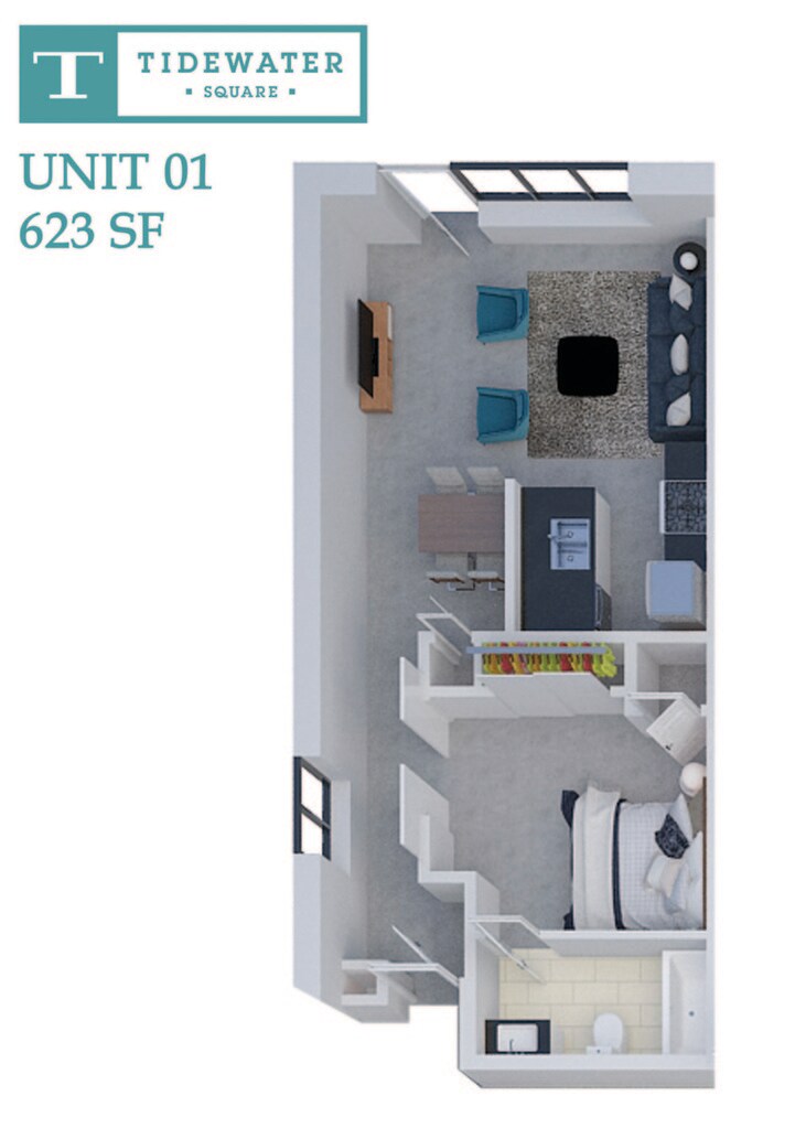 Tidewater Square Unit 08 - Floorplan 1 Apartment Unit: 08Apartment Model: Tidewater Square Unit 081 Bedroom, 1 Bath, 554 sq ftAvailable January 10, 2026Tidewater Square Unit 05