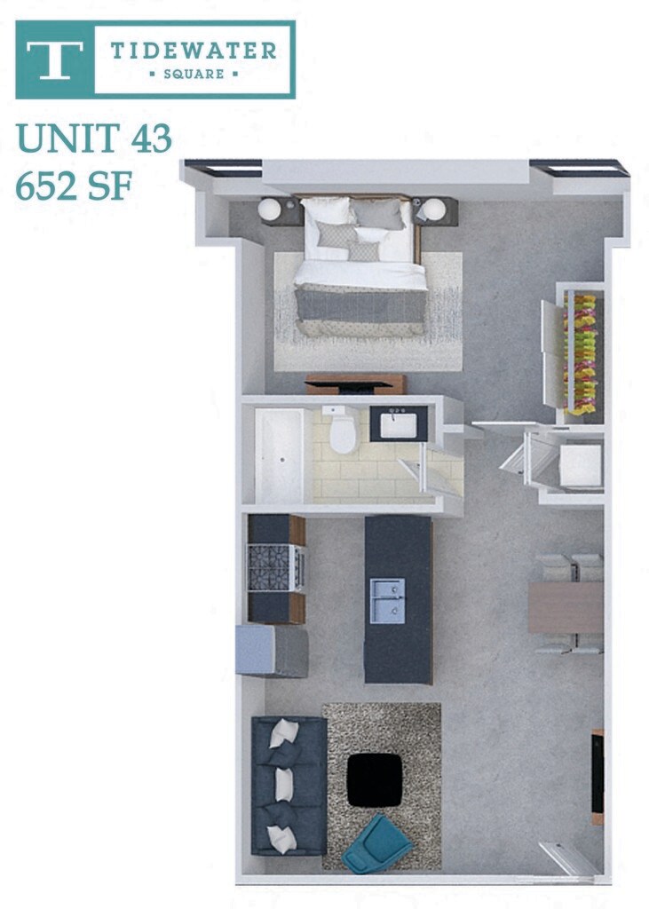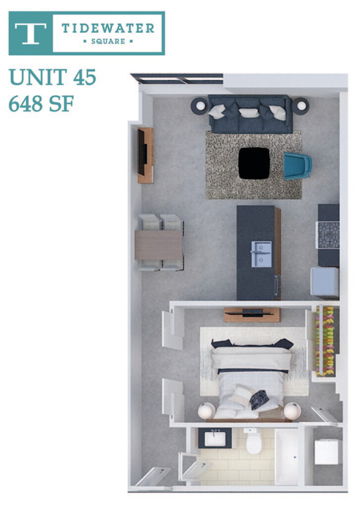 Apartment Model: Tidewater Square Unit 071 Bedroom, 1 Bath, 561 sq ftUnavailable![]()