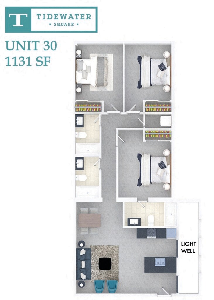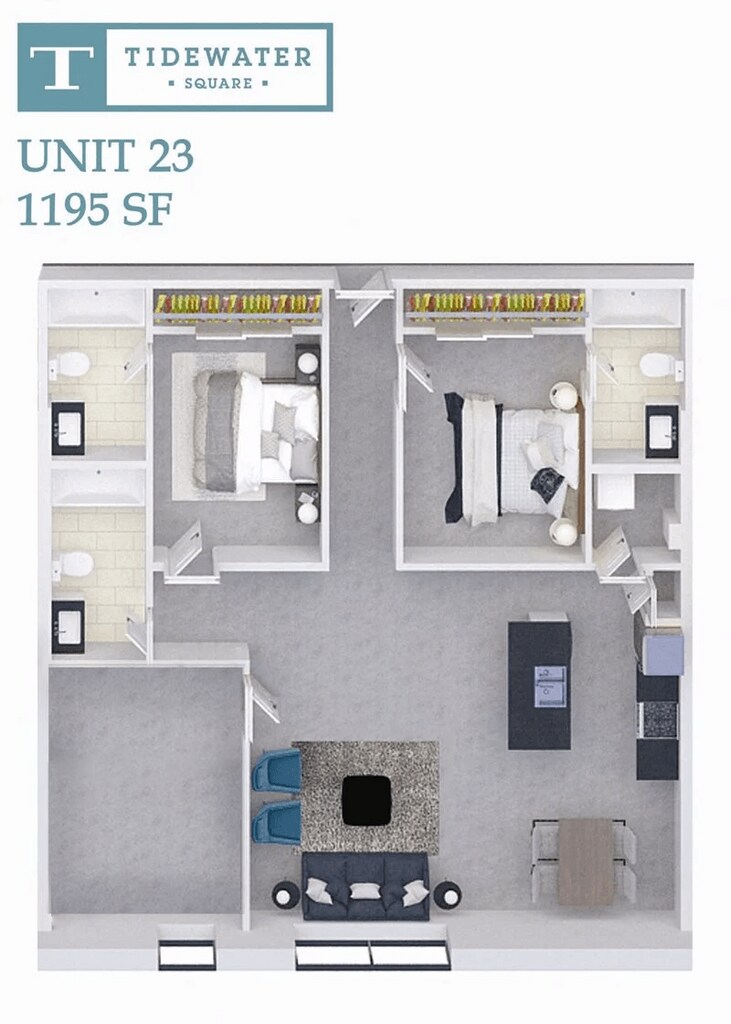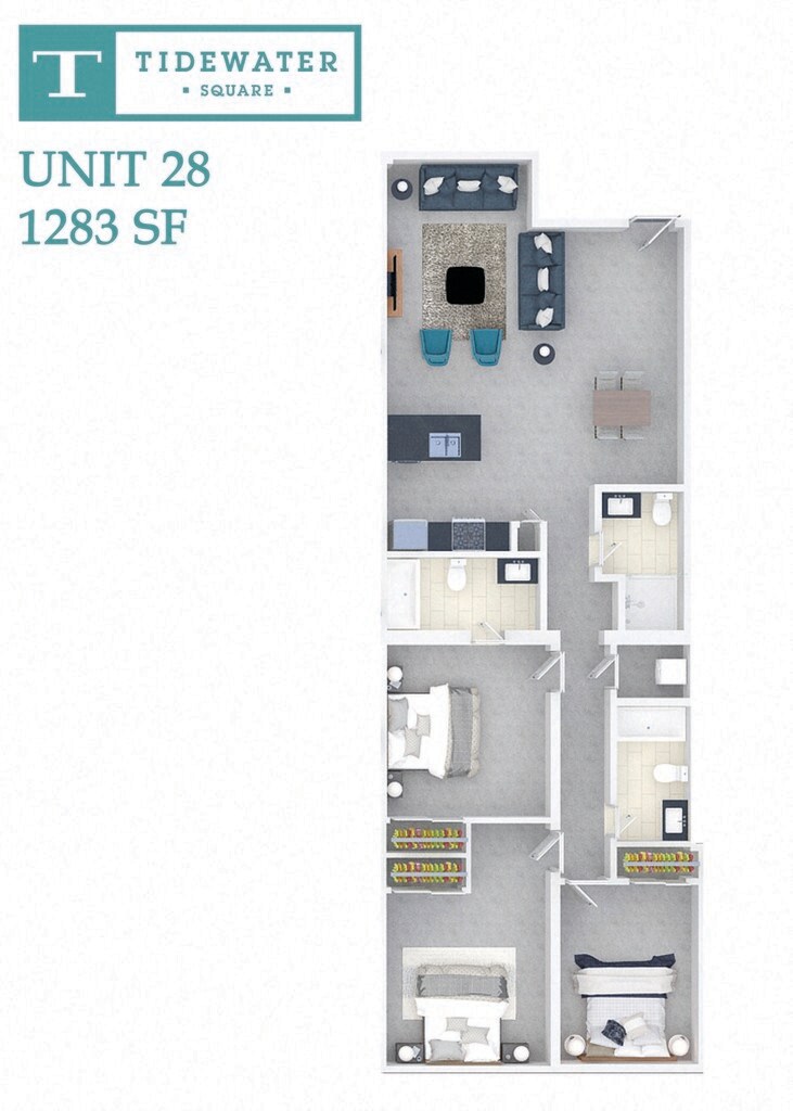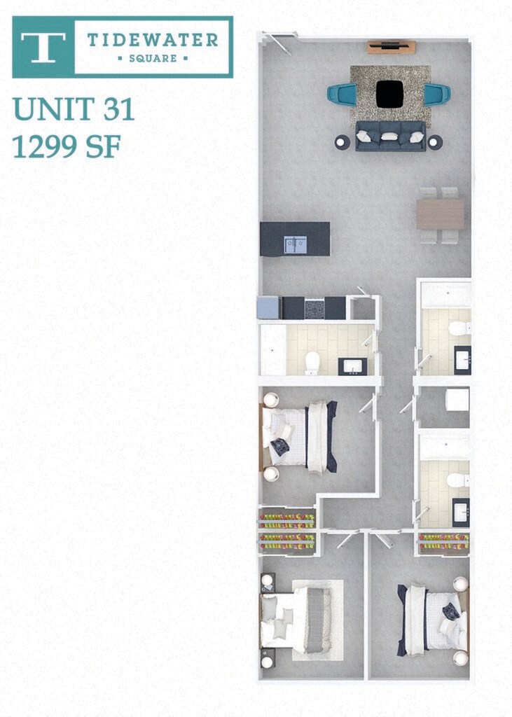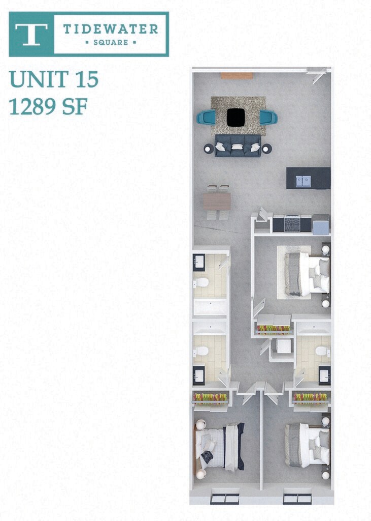 Apartment Model: Tidewater Square Unit 263 Bedroom, 3 Bath, 1309 sq ftUnavailable![]()