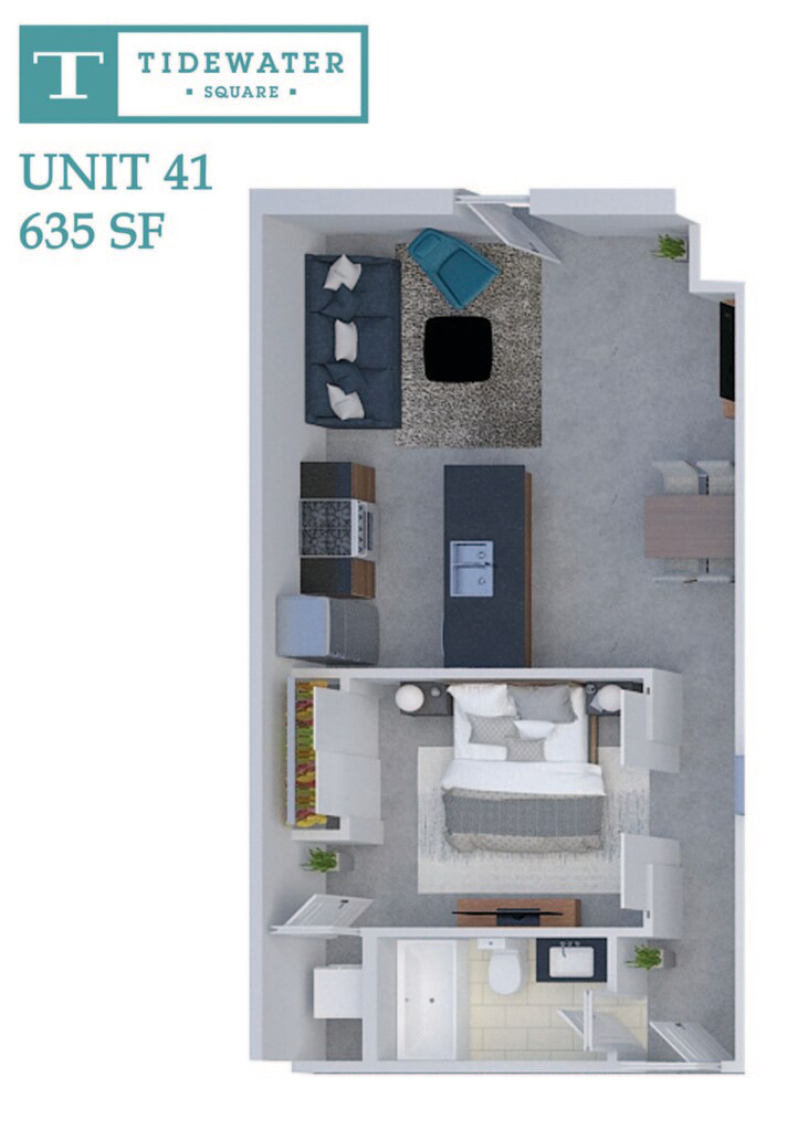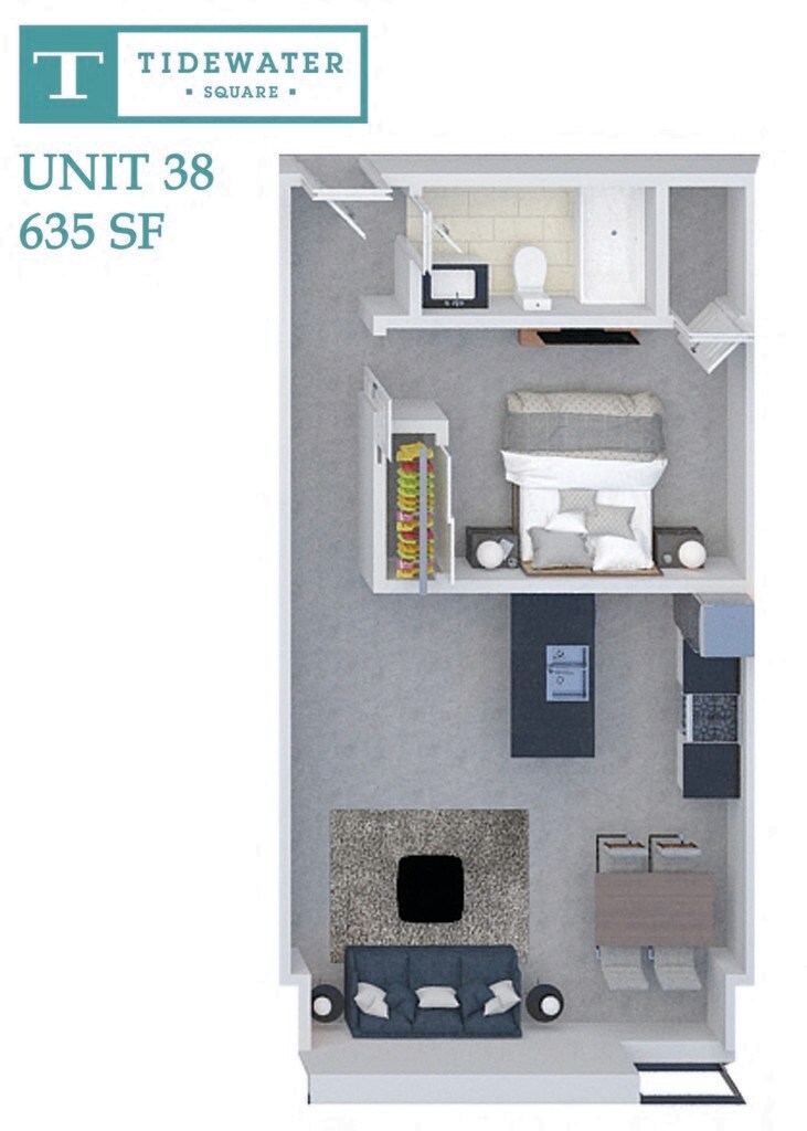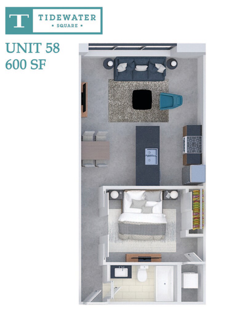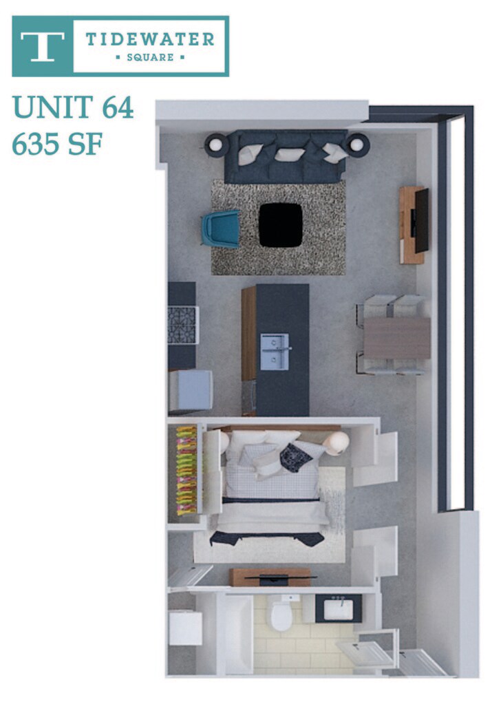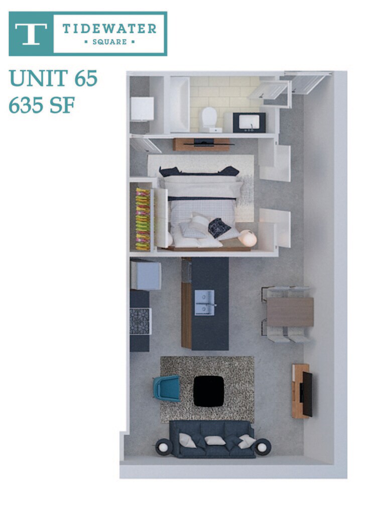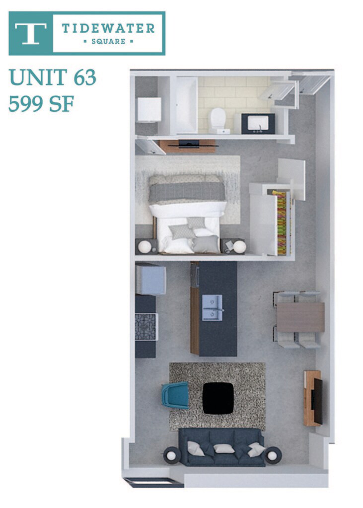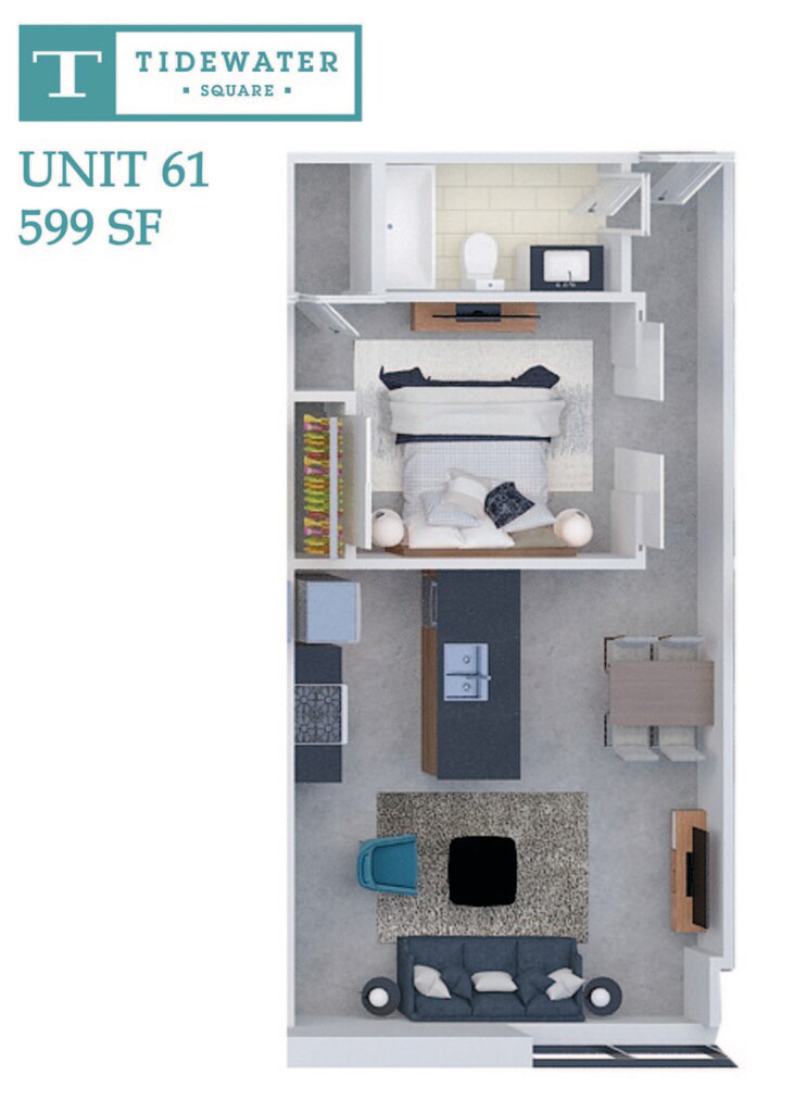 Apartment Model: Tidewater Square Unit 631 Bedroom, 1 Bath, 599 sq ftUnavailable![]()
