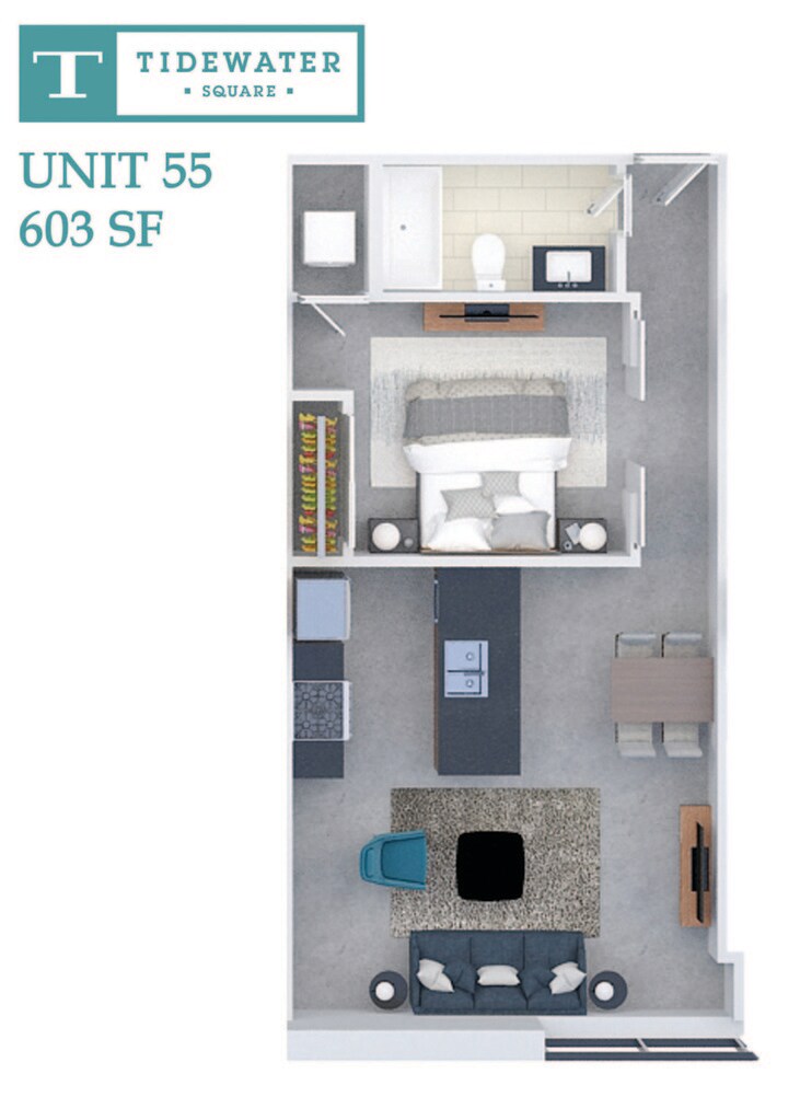 Apartment Model: Tidewater Square Unit 541 Bedroom, 1 Bath, 602 sq ftUnavailable![]()