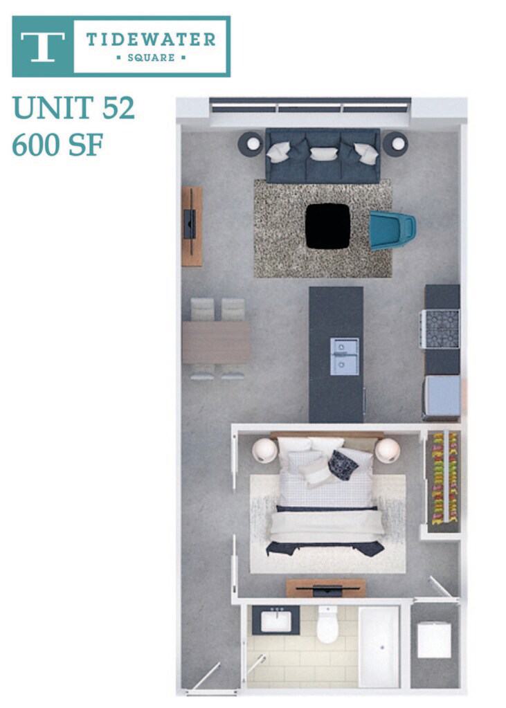 Apartment Model: Tidewater Square Unit 531 Bedroom, 1 Bath, 600 sq ftUnavailable![]()