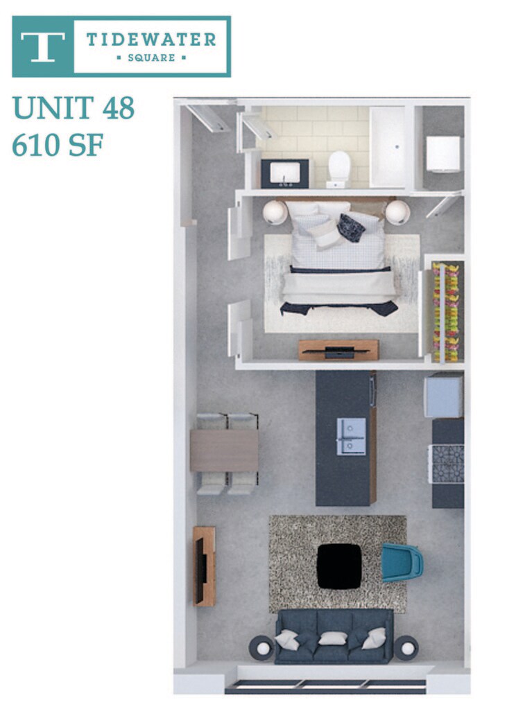 Apartment Model: Tidewater Square Unit 571 Bedroom, 1 Bath, 597 sq ftUnavailable![]()