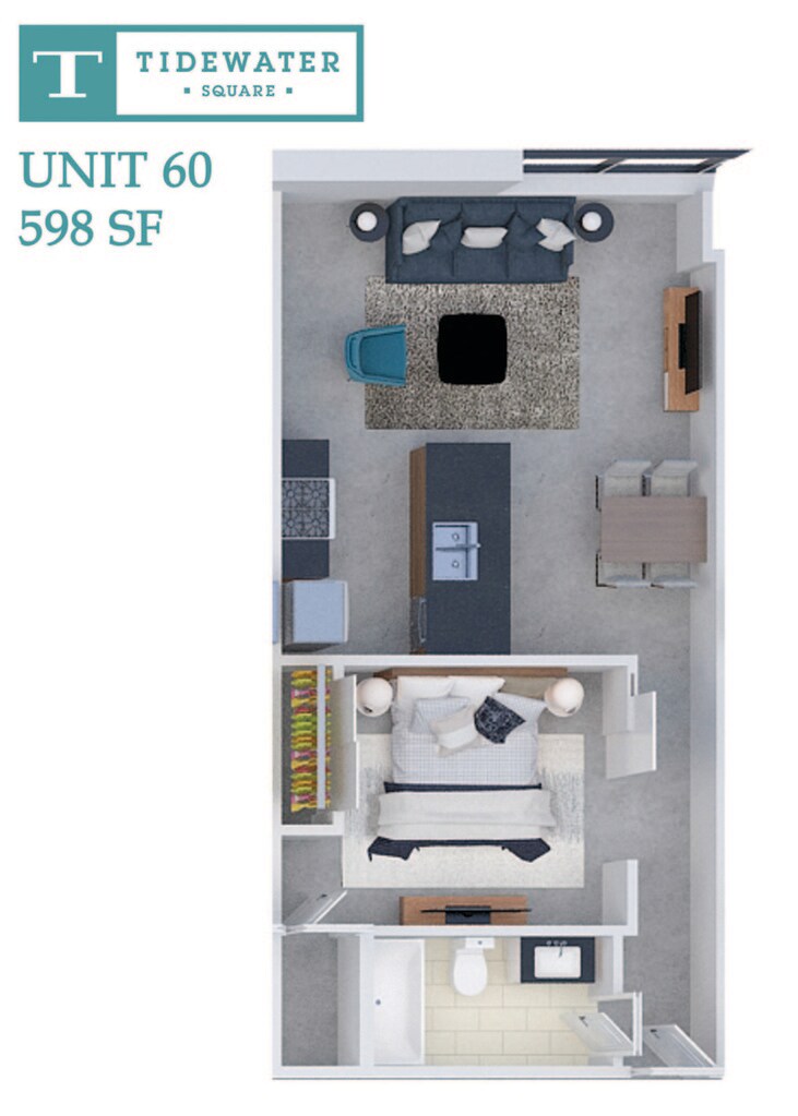 Apartment Model: Tidewater Square Unit 561 Bedroom, 1 Bath, 598 sq ftUnavailable![]()