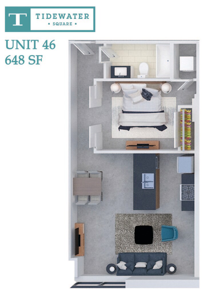 Apartment Model: Tidewater Square Unit 051 Bedroom, 1 Bath, 546 sq ftUnavailable![]()