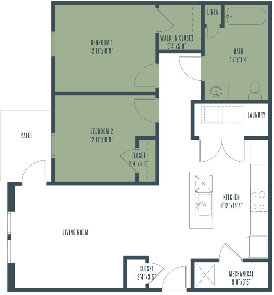 2 Beds, 1 Bath, 1024 sq ftModel Gallery