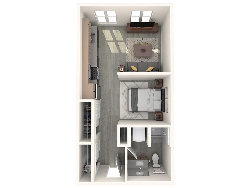 Apartment Model: Open 1x1$1,265Studio, 1 Bath, 474 sq ftAvailable December 7, 2025![]() - Open 1x1 - Floorplan 1 ![]() - Open 1x1 - Floorplan 2 Apartment Unit: 224Apartment Model: Open 1x1$1,265Studio, 1 Bath, 485 sq ftAvailable December 7, 2025- Alcove StudioStudio, 1 Bath, 515 sq ftLargest StudioThis is the largest Studio at this Property- Model Gallery- Floorplans- Availability Details- Availability Date - Unit - Sq Ft - Call for Availability - Alcove Studio - 515 sq ft - Model Amenities and Features- Features- Air Conditioning