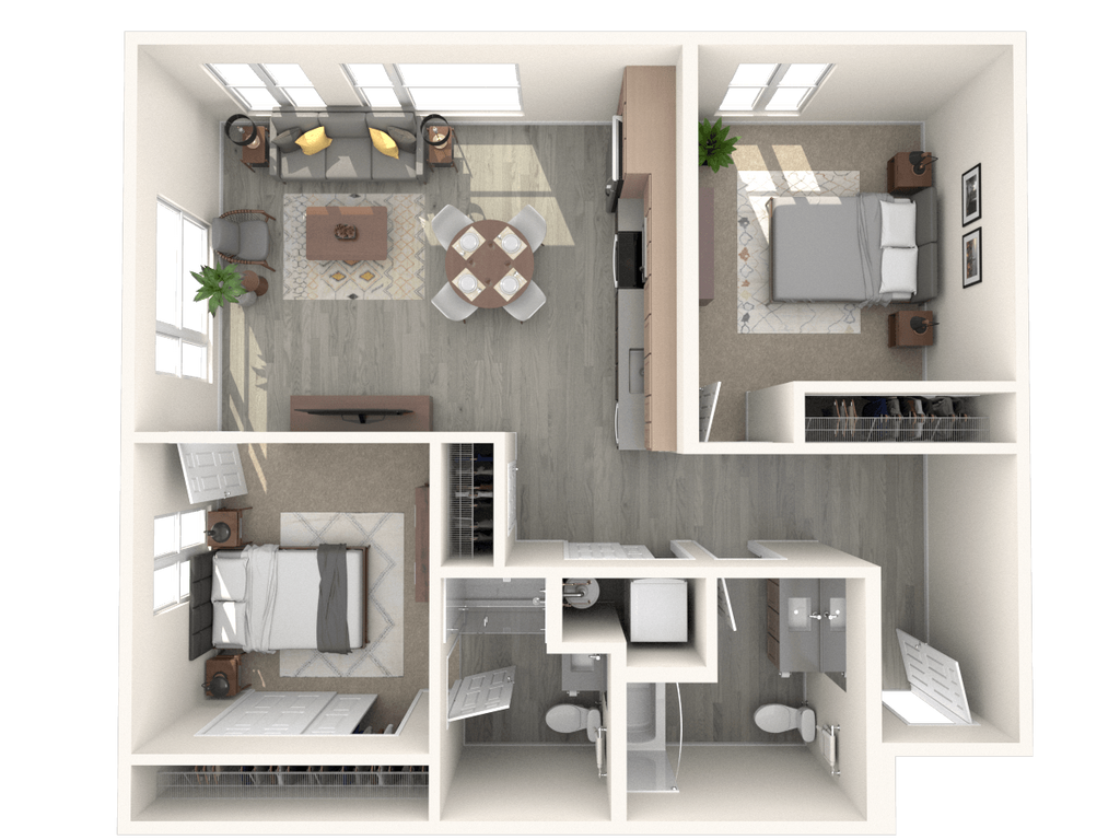 Apartment Model: 2x2 BCall For Rates2 Bedroom, 2 Bath, 981 sq ftUnavailable![]() - 2x2 B - Floorplan 1 ![]() - 2x2 B - Floorplan 2