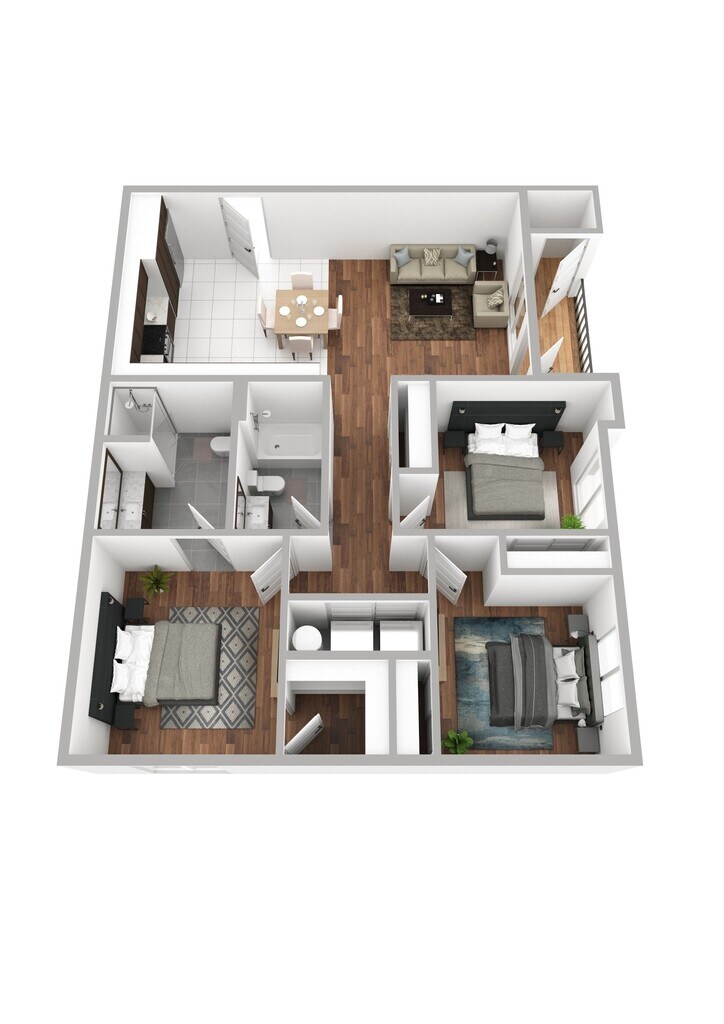 2 Bed 2 Bath - Floorplan 1 Apartment Unit: B305Apartment Model: 2 Bed 2 Bath$2,0652 Bedroom, 2 Bath, 1001 sq ftAvailable Now3 Bedrooms