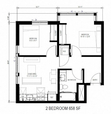 Two-Bedroom - Floorplan 2 Apartment Unit: 408Apartment Model: Two-Bedroom$1,6282 Bedroom, 1 Bath, 658 sq ftAvailable November 25, 2025Two-Bedroom Loft
