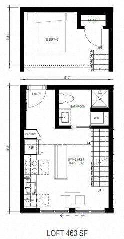 One-Bedroom Loft - Floorplan 2 One-Bedroom
