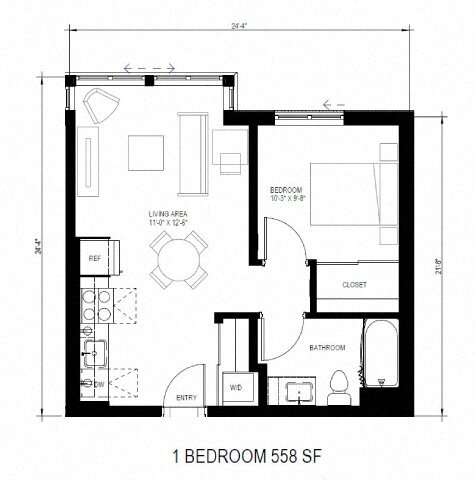 1 Bed, 1 Bath, 505-621 sq ftModel Gallery