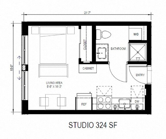 Studio, 1 Bath, 299-383 sq ftAvailable NowModel Gallery