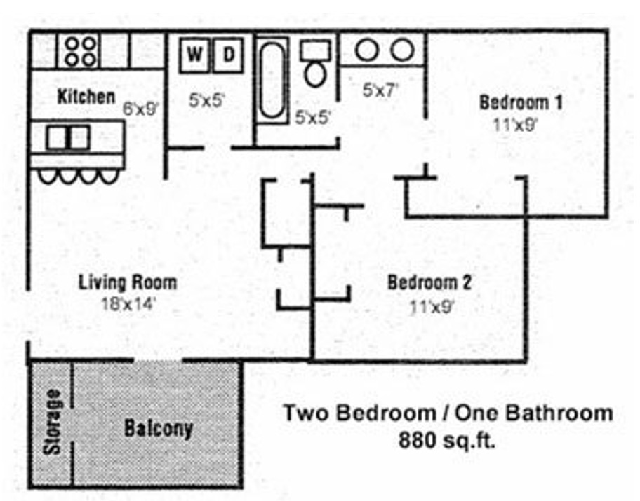 Apartment Model: 2 BedroomFrom $1,0002 Bedroom, 1 Bath, 880 sq ftAvailable Now2 Bedroom - Floorplan 1 4 Bedrooms