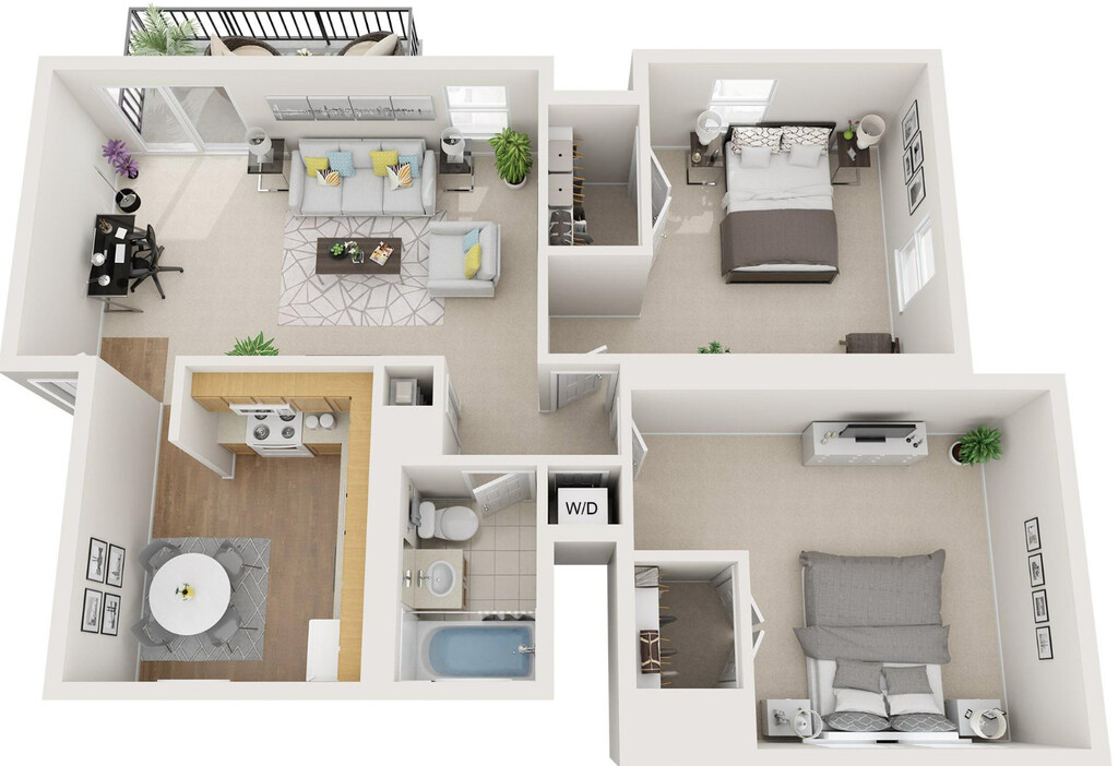 2 Beds, 1 Bath, 813 sq ftModel Gallery