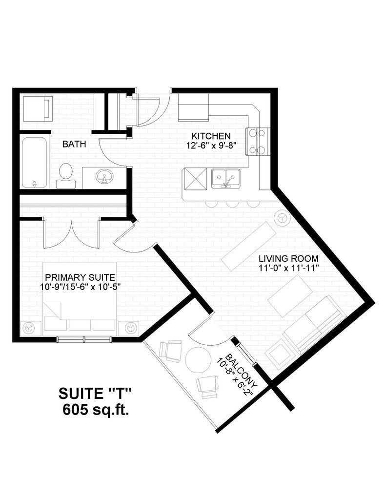 1 Bedroom, 1 Bathroom - Floorplan 6 ![]()