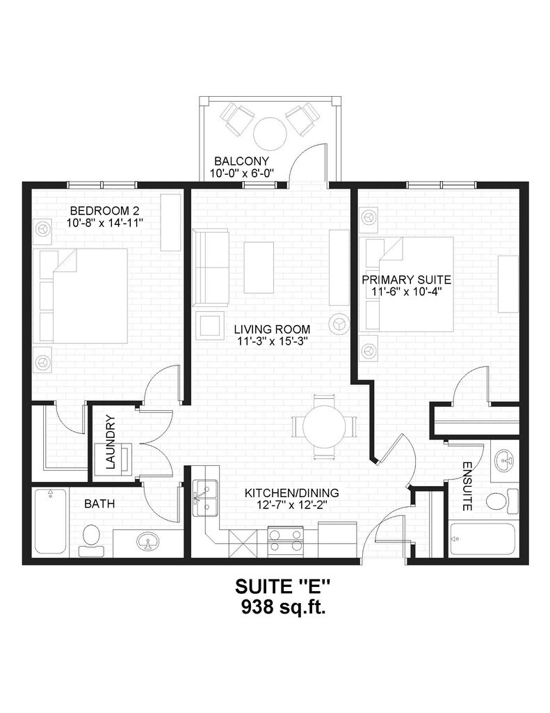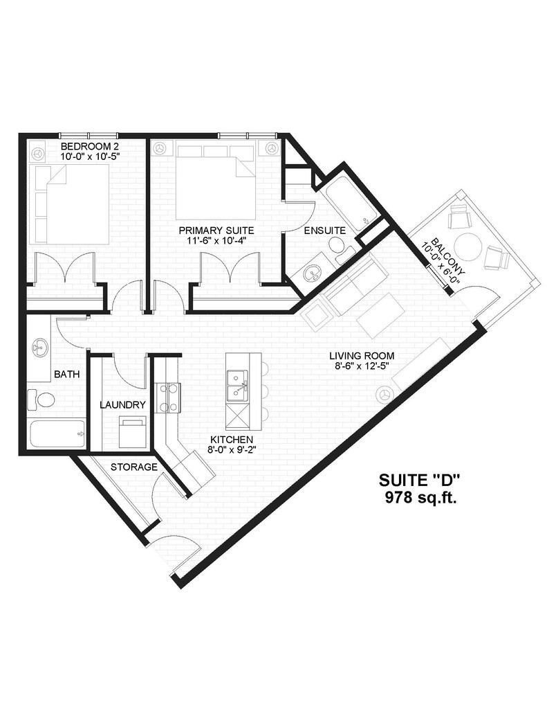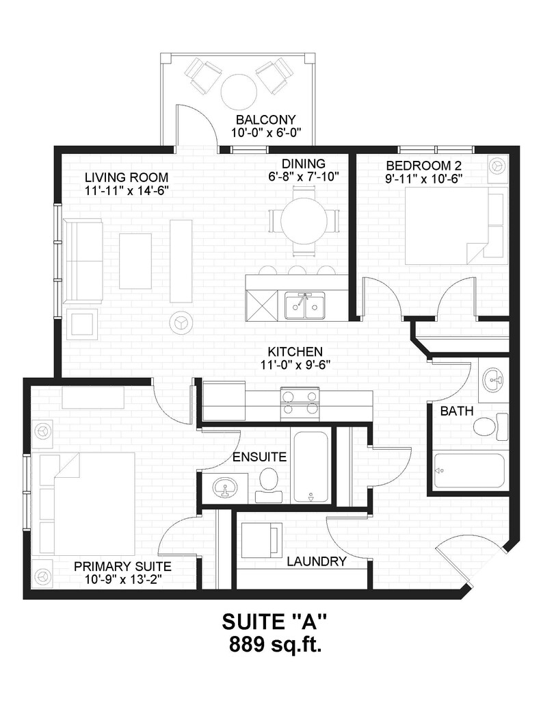 1 Bedroom, 1 Bathroom - Floorplan 10 2 Bedrooms