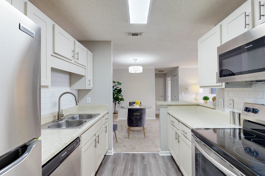 October 12, 2015Adequate space and countertops in the kitchen. Plenty of cabinets. Prompt maintenence and nice appliances. No bugs. The only complaint I have with this place is that there is no dog weight restrictions. I hear the dogs upstairs playing and fighting all the time. Dog owners should be put on the bottom floors if no weight restrictions. Management is new, but nice. There are monthly clubhouse contests. Trash pickup is nice. I've lived here over a year now and I still like it.Review from Apartments.com