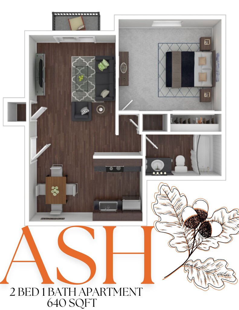 Price Availability Date Unit Sq Ft From $828 Available Now ASH 640 sq ft Model Amenities and Features