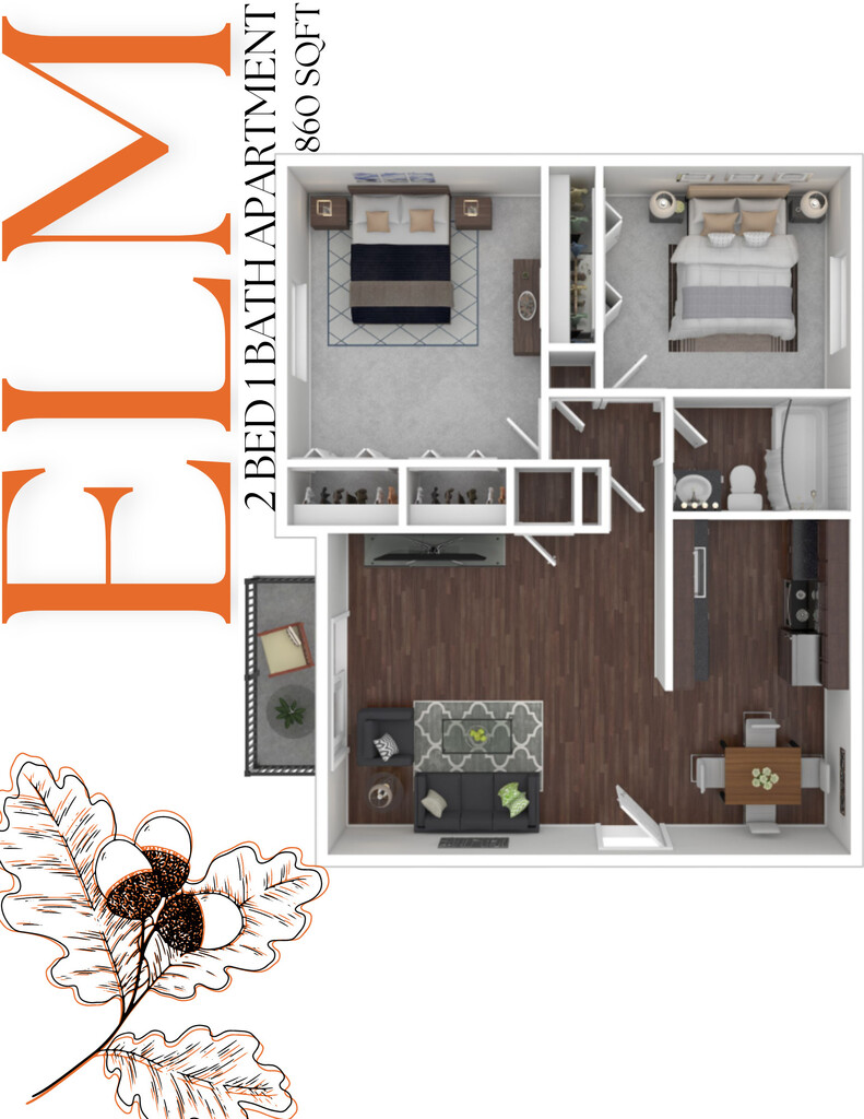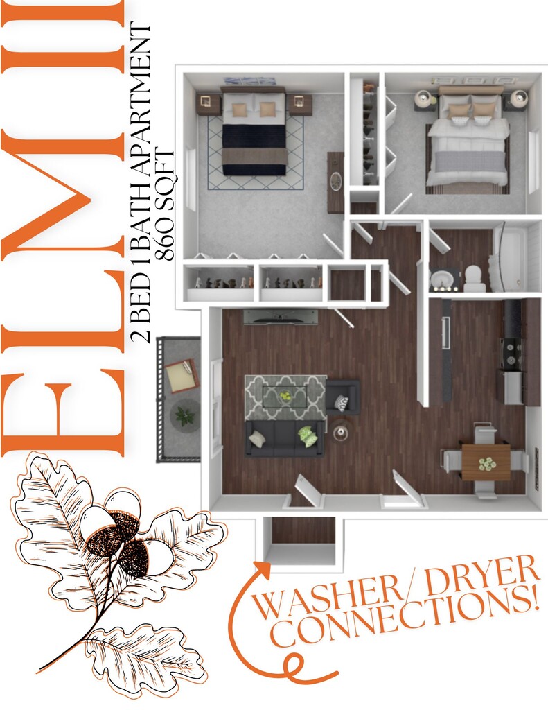 Apartment Model: ELM llFrom $9952 Bedroom, 1 Bath, 900 sq ftAvailable Now![]()