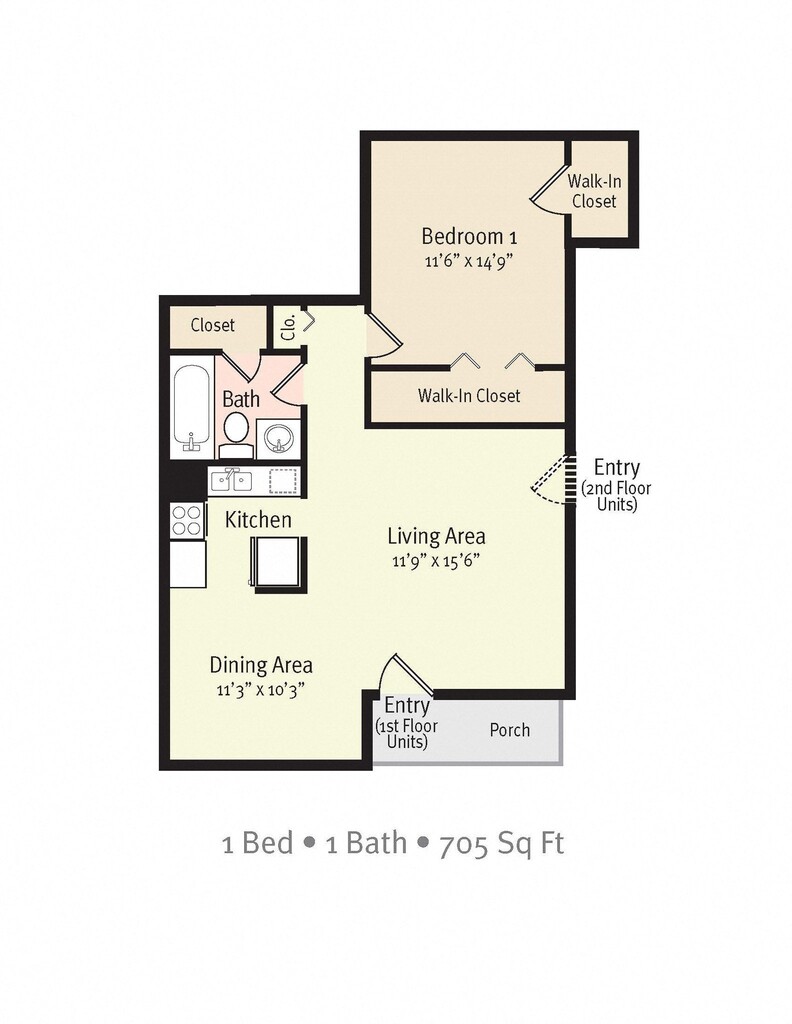 2 Beds, 1 Bath, 805 sq ftAvailable NowModel Gallery