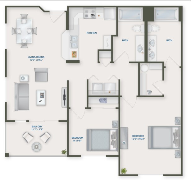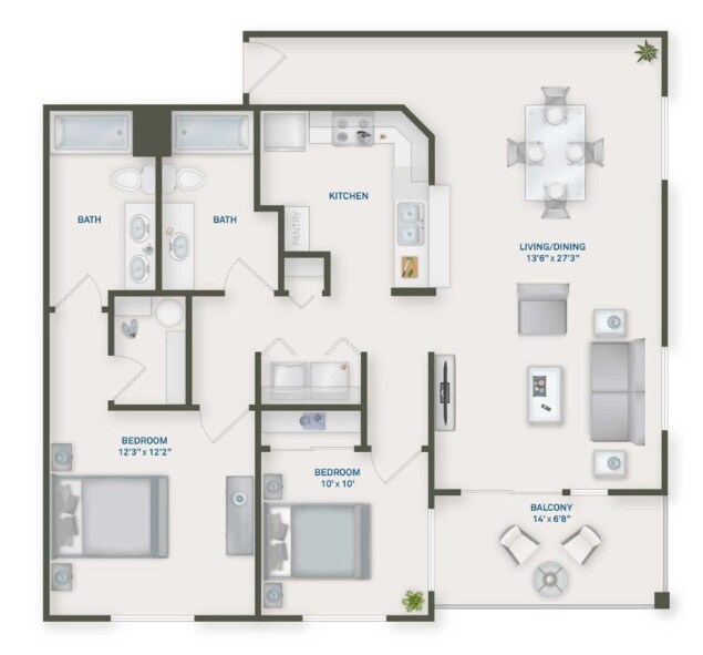 2 Beds, 2 Baths, 1012 sq ftModel Gallery