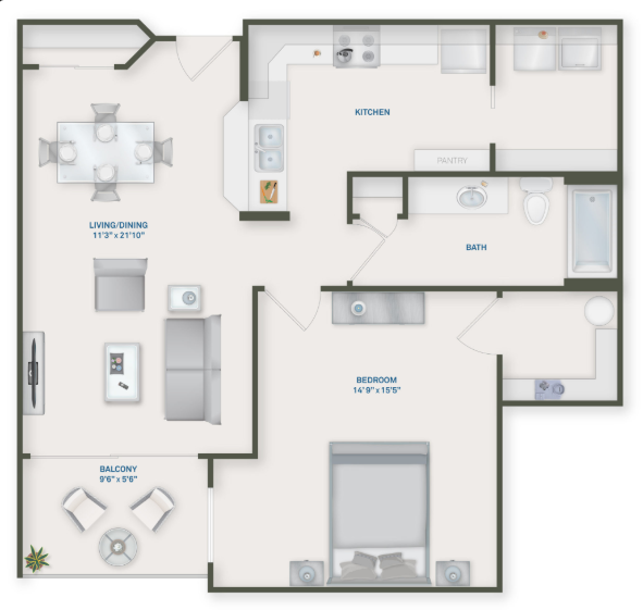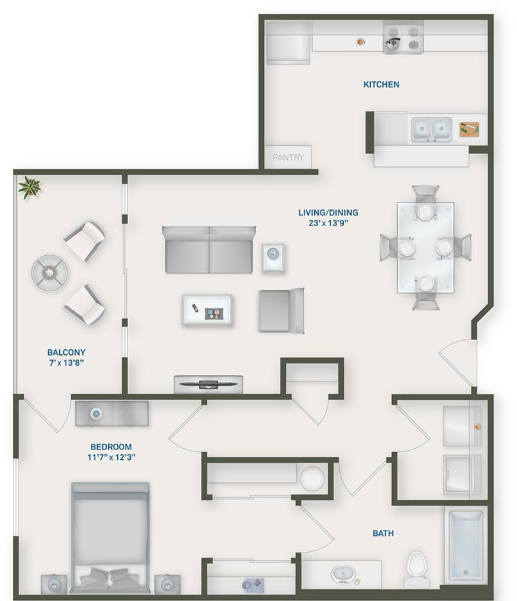1 Bed, 1 Bath, 719 sq ftModel Gallery