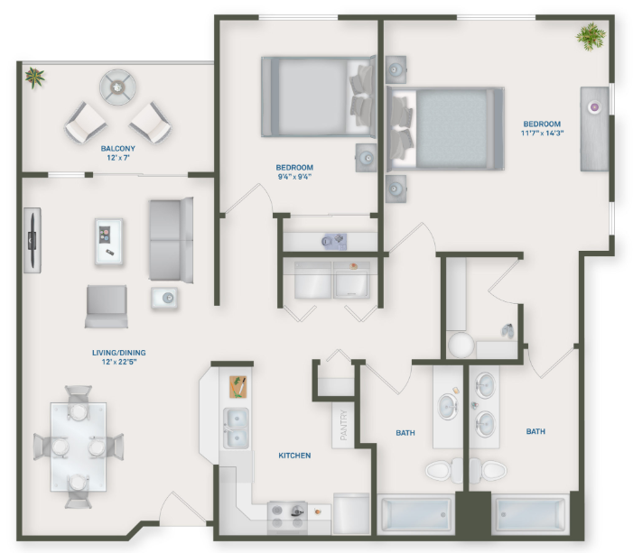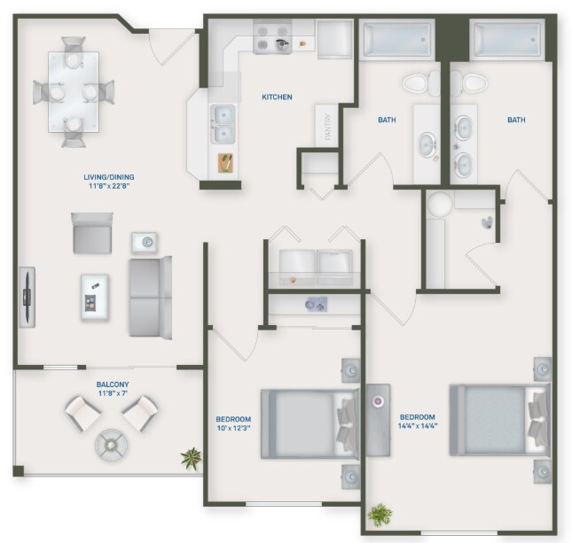 2 Beds, 2 Baths, 1035 sq ftModel Gallery
